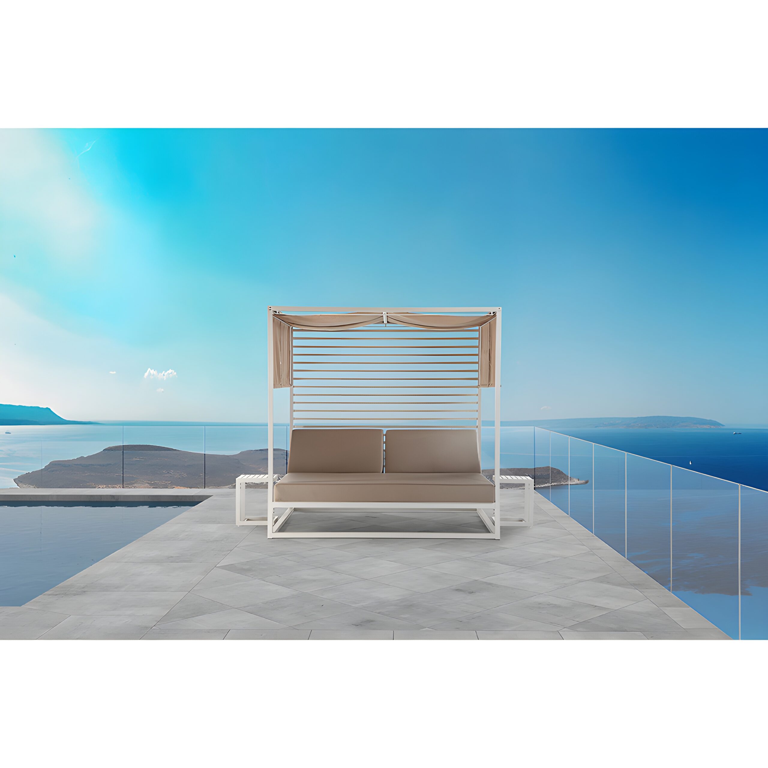 Aluminium daybed with PU mattress, water repellent. Adjustable back with 5 positions and adjustable tents.