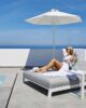 Aluminium double sunbed upholstered with fast dry foam and Sunbrella® fabric. Available for an outdoor use.