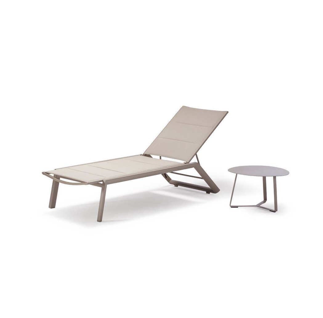 Ξαπλώστρα αλουμινίου με σκελετό, κάθισμα και πλάτη από textylene και αφρό. Πάχος 2,00 mm.