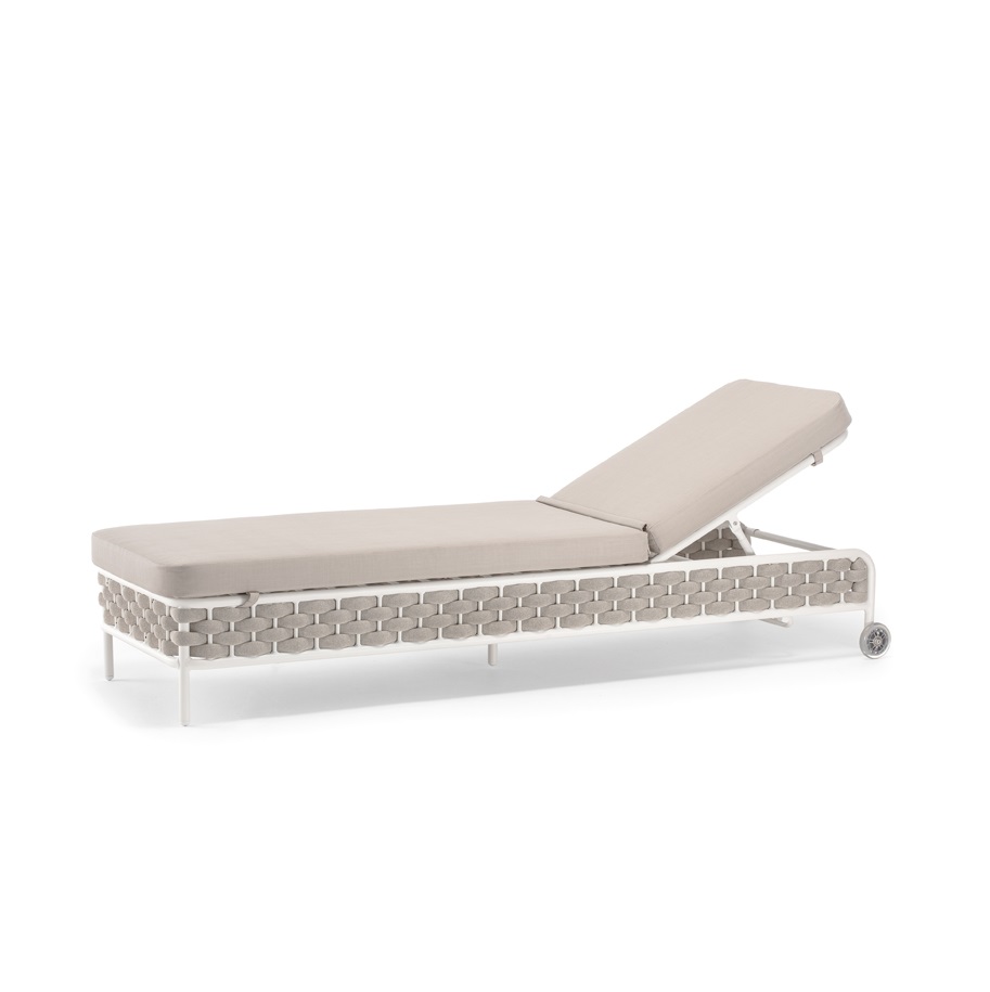 Ξαπλώστρα αλουμινίου επενδυμένη με textylene και λαστιχένιο σχοινί. Μαξιλάρια από υφαντό.