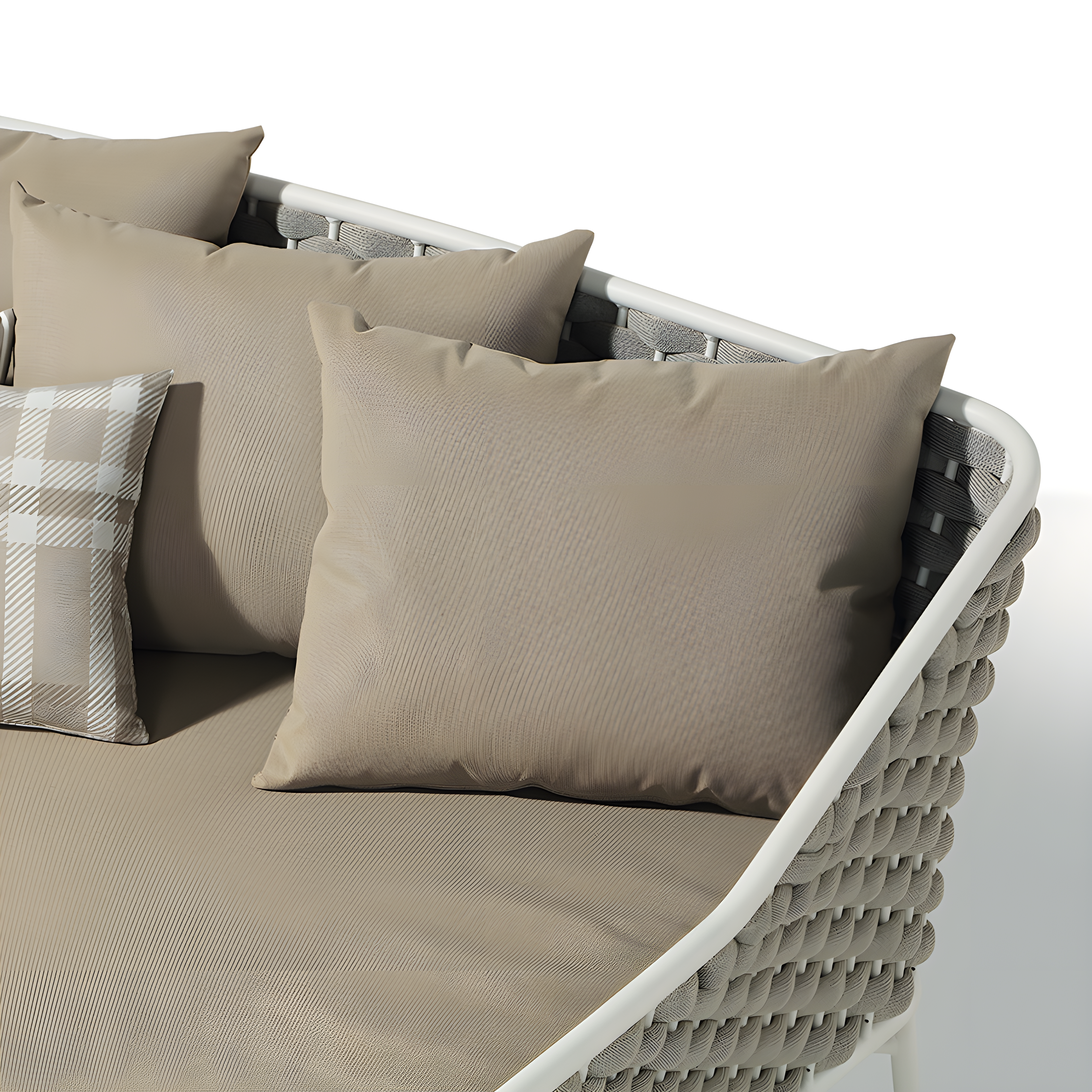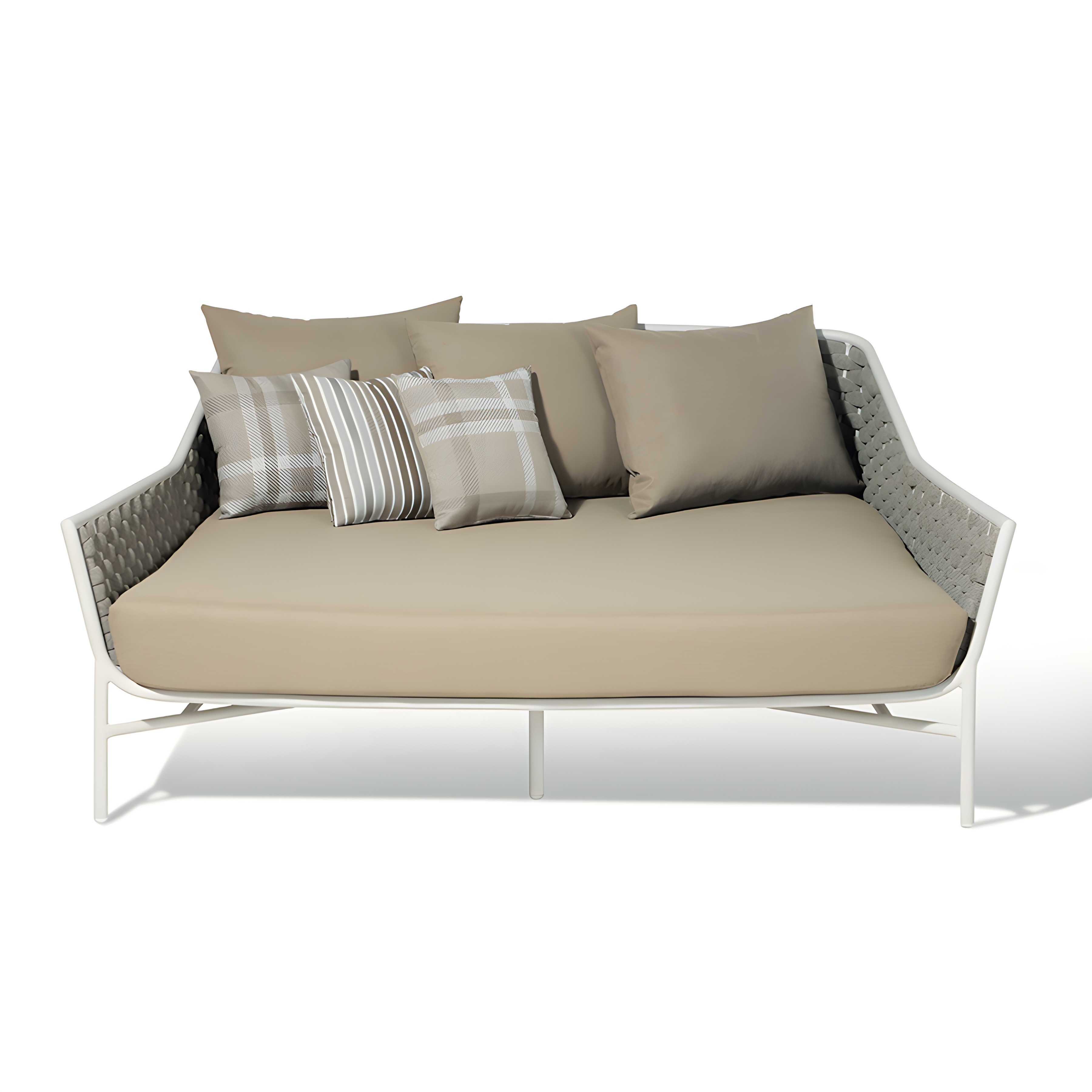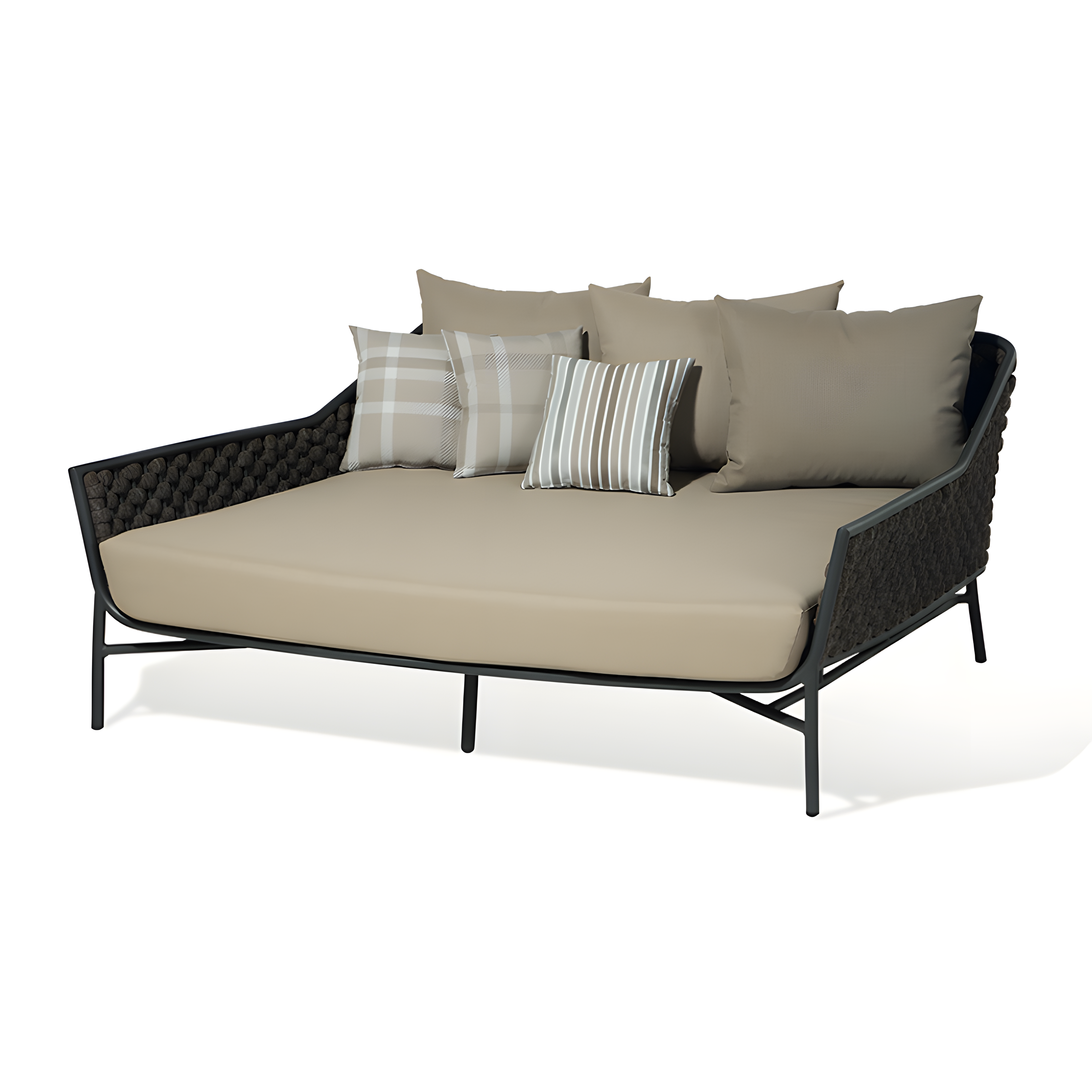 Aluminium daybed covered with textylene and rubber rope. Textylene cushions.