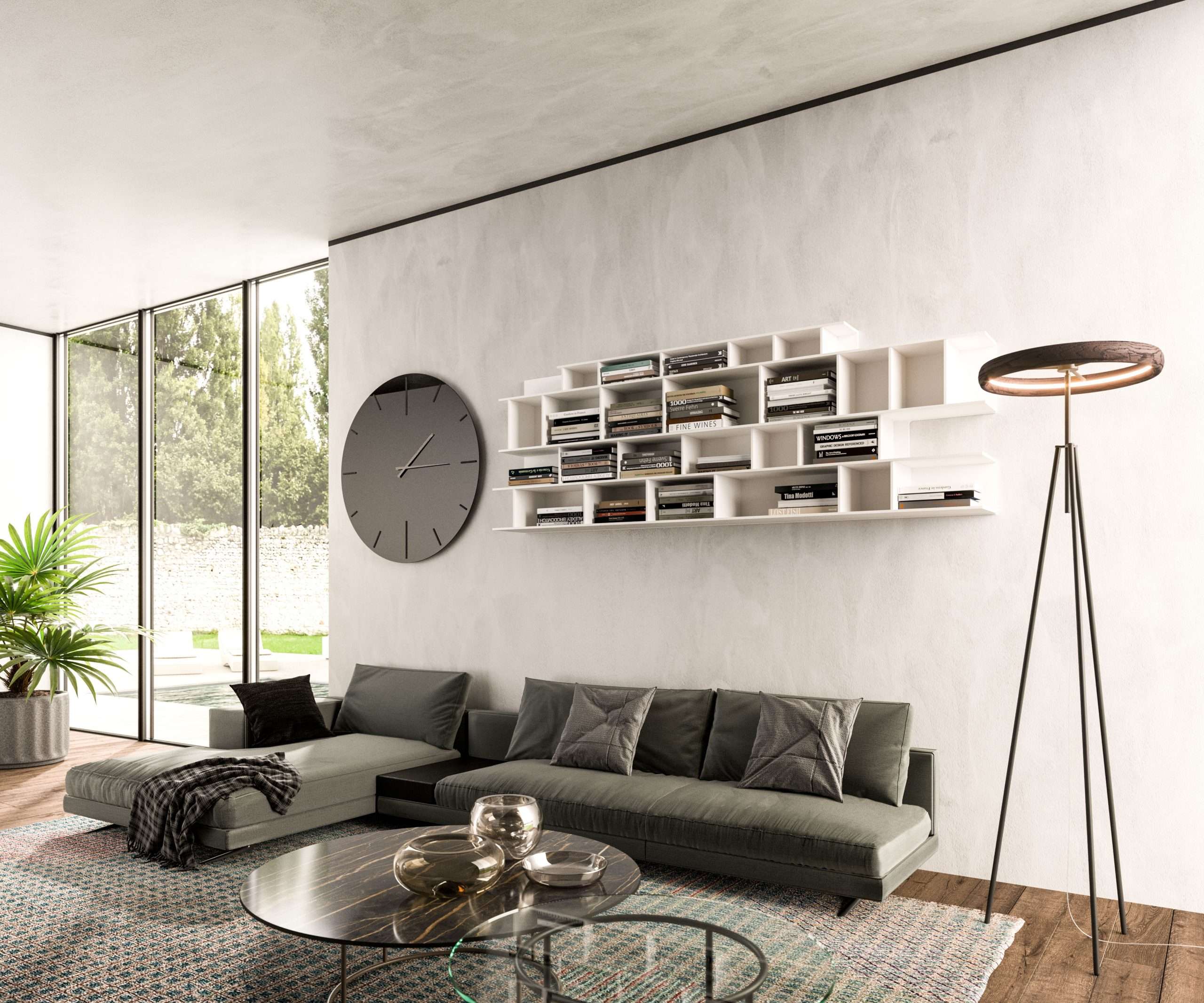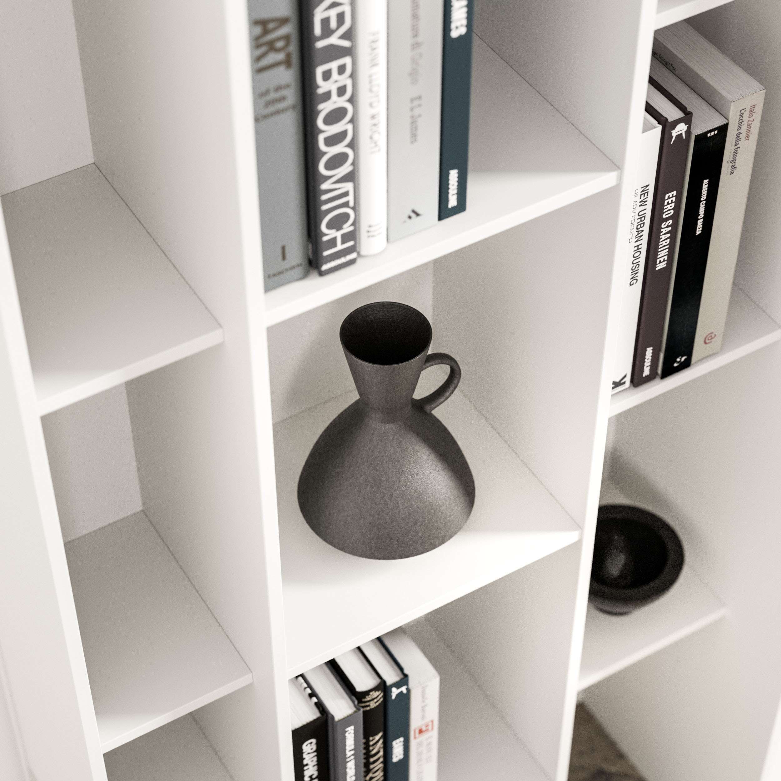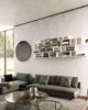 Αρθρωτή βιβλιοθήκη με ρυθμιζόμενη οριζόντια και κάθετη διαμόρφωση. Σύστημα αγκυρώσεως τοίχου για ανάρτηση εκτός εδάφους.