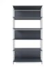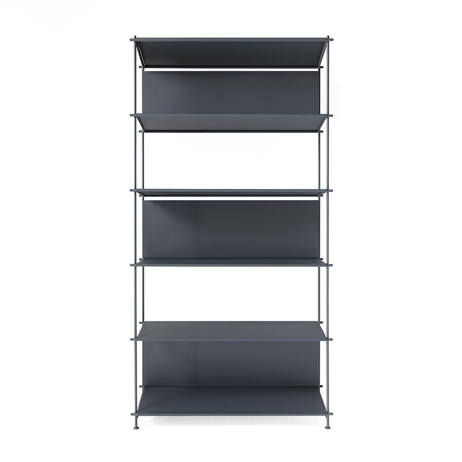 MUSA is the modular bookcase ideal for those who love design and minimalist style. The bookcase is very versatile and can be used against a wall or in the centre of a room as a divider. The modular structure of MUSA is made entirely of steel with load-bearing sides in solid round Ø12 mm and backs in sheet steel, both painted with sophisticated sandblasted finishes. The system allows you to create the compositions best suited to your needs by combining sides of 4 different heights (202, 126, 88 and 50 cm) and shelves available in various sizes: 43, 58, 88 cm. The shelves are also available in different materials. In painted steel in the same sandblasted finishes as the structure or in 12 mm ecological laminates with satin or textured finishes. The steel feet are adjustable in height to compensate for any irregularities in the floor.
