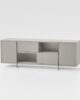 Μπουφές με δομή από Ecological laminate πάχους 25 mm, πόρτες 18 mm και συρόμενες πόρτες. Στο εσωτερικό, δύο πάνελ σκληρυμένου γυαλιού 10 mm υποστηρίζουν τη δομή και χωρίζουν τους χώρους με ελαφριά διαφάνεια. Πόδια αλουμινίου με ρυθμιζόμενο ύψος.
