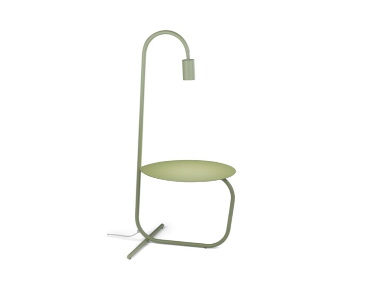 Companion of the PINOCCHIO lamp and teacher of playfulness, LUCIGNOLO illuminates the jovial and carefree moments of all living spaces. The new powder-coated metal floor lamp can also be used as a comfortable side table or bedside table. Friend of the moments of reading and relax in general, it is composed of a small round shelf, surmounted by a metal arm with an adjustable projector. LUCIGNOLO is available in sage green and light gray colours.