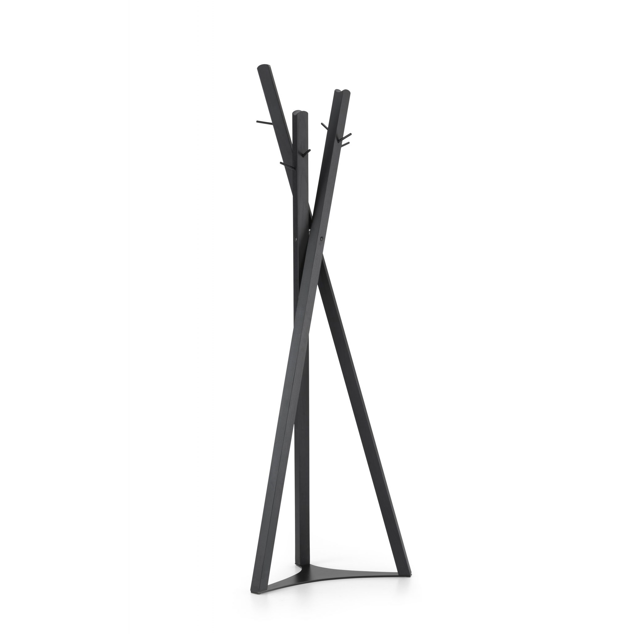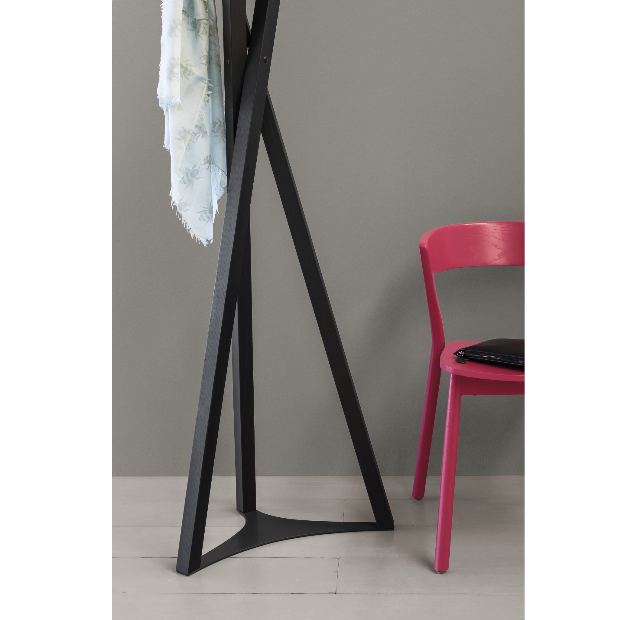 The multifaceted architect and designer, Massimo Broglio, with his cross-cutting style, innovation and pragmatism, has designed the Edith project, which has evolved from a simple chair to an entire collection, encompassing a small table, a coat rack and shelves.The inspiration for the Tobias coat rack comes from the three legs of the Niels table. In the case of the coat rack, three squared elements of different lengths are assembled together at different angles.The perception is that of a conceptual “ephemeral sculpture” or “land art” installation, in a nod to contemporary art. The addition of metal pegs in contrasting colours makes for additional adaptability and versatility.
