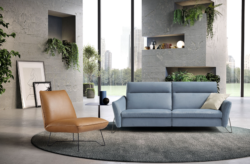 GAIA is the relaxation sofa with clean and essential lines characterized by the elegant metal foot that rises along the armrest. Available in more than 500 colored coverings, GAIA has the same industrial style as the LIA armchair. Combine them to give a metropolitan look to your living room.