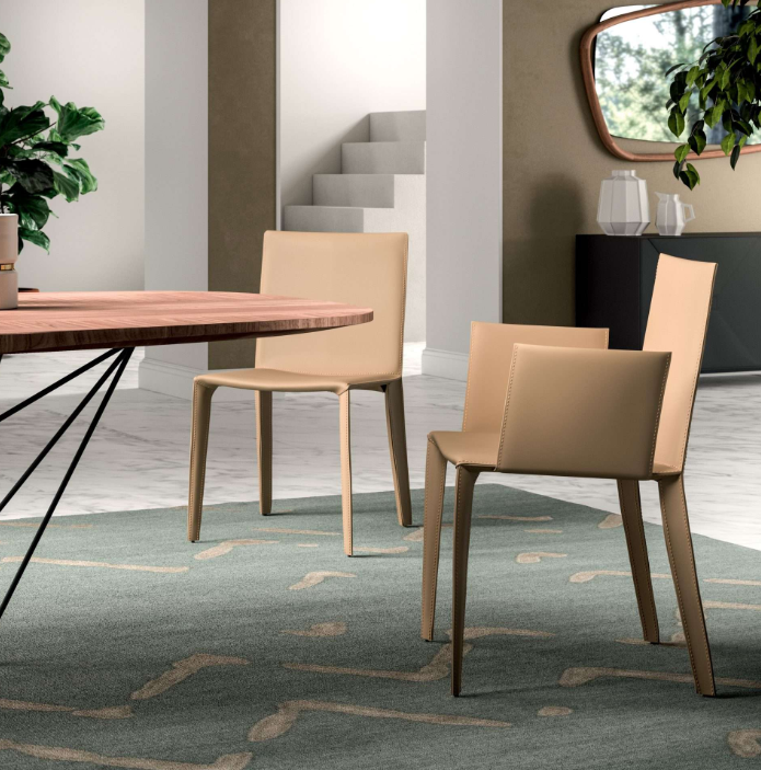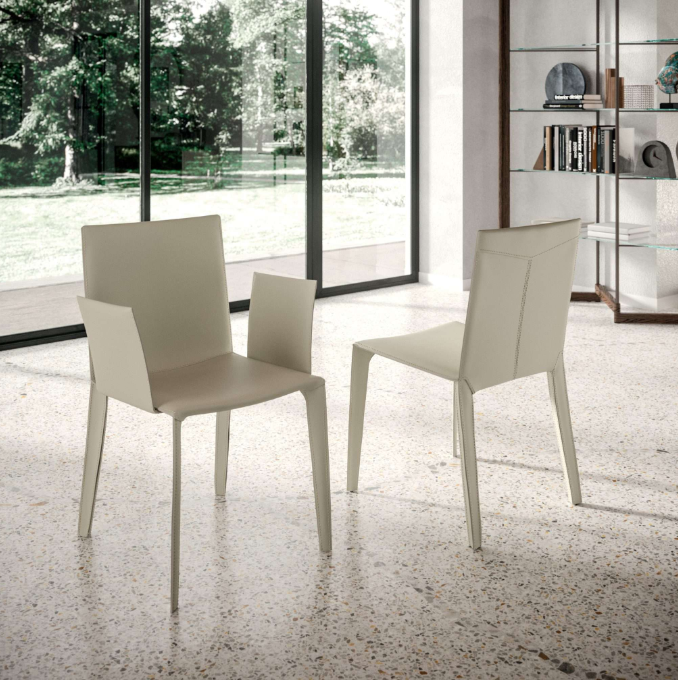 Καρέκλα με πλήρως δερμάτινη επένδυση με ασορτί ραφές.