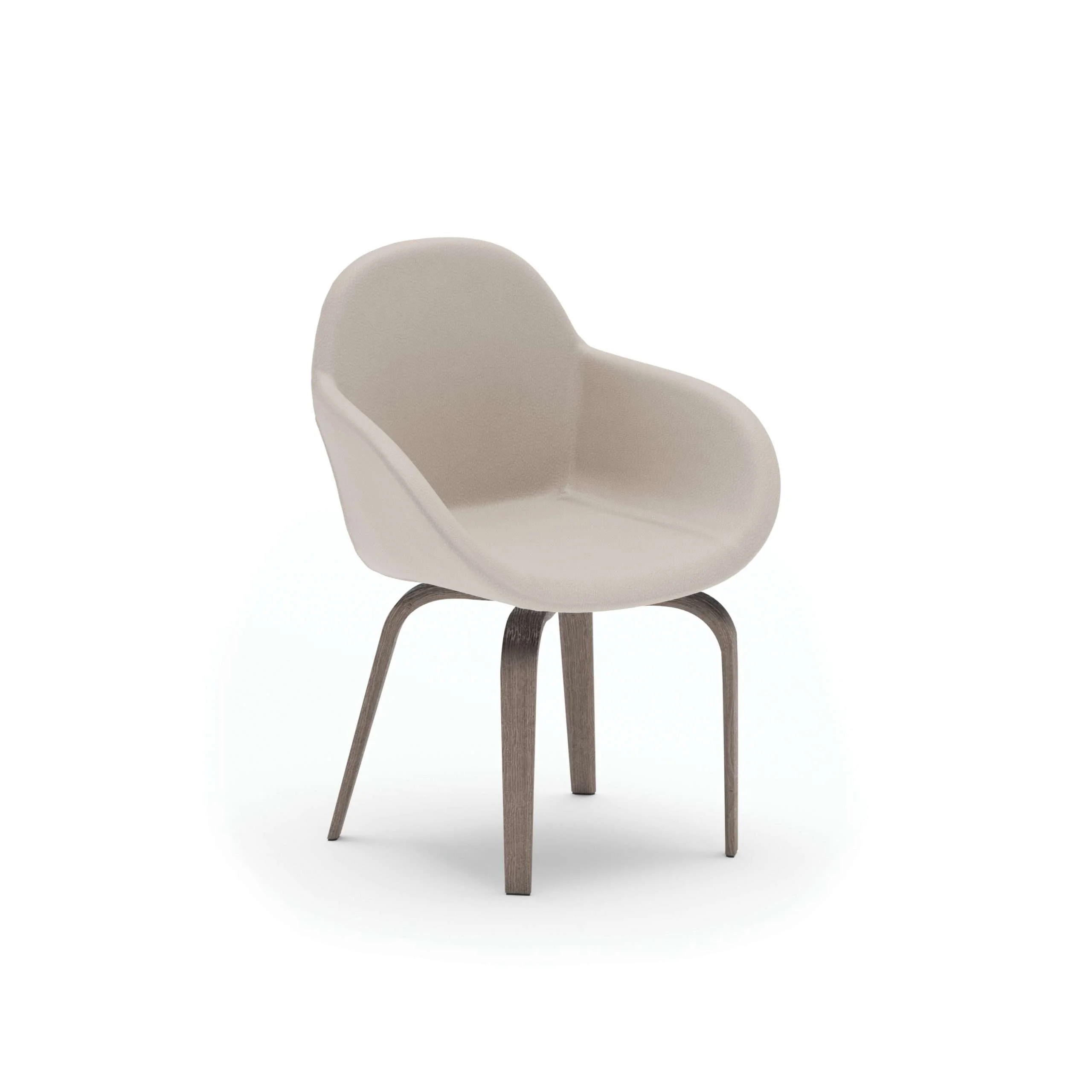 Πλήρως επενδυμένη καρέκλα με υποβραχιόνια σε διάφορα φινιρίσματα. Βάση από καπλαμά κόντρα πλακέ δρυός.