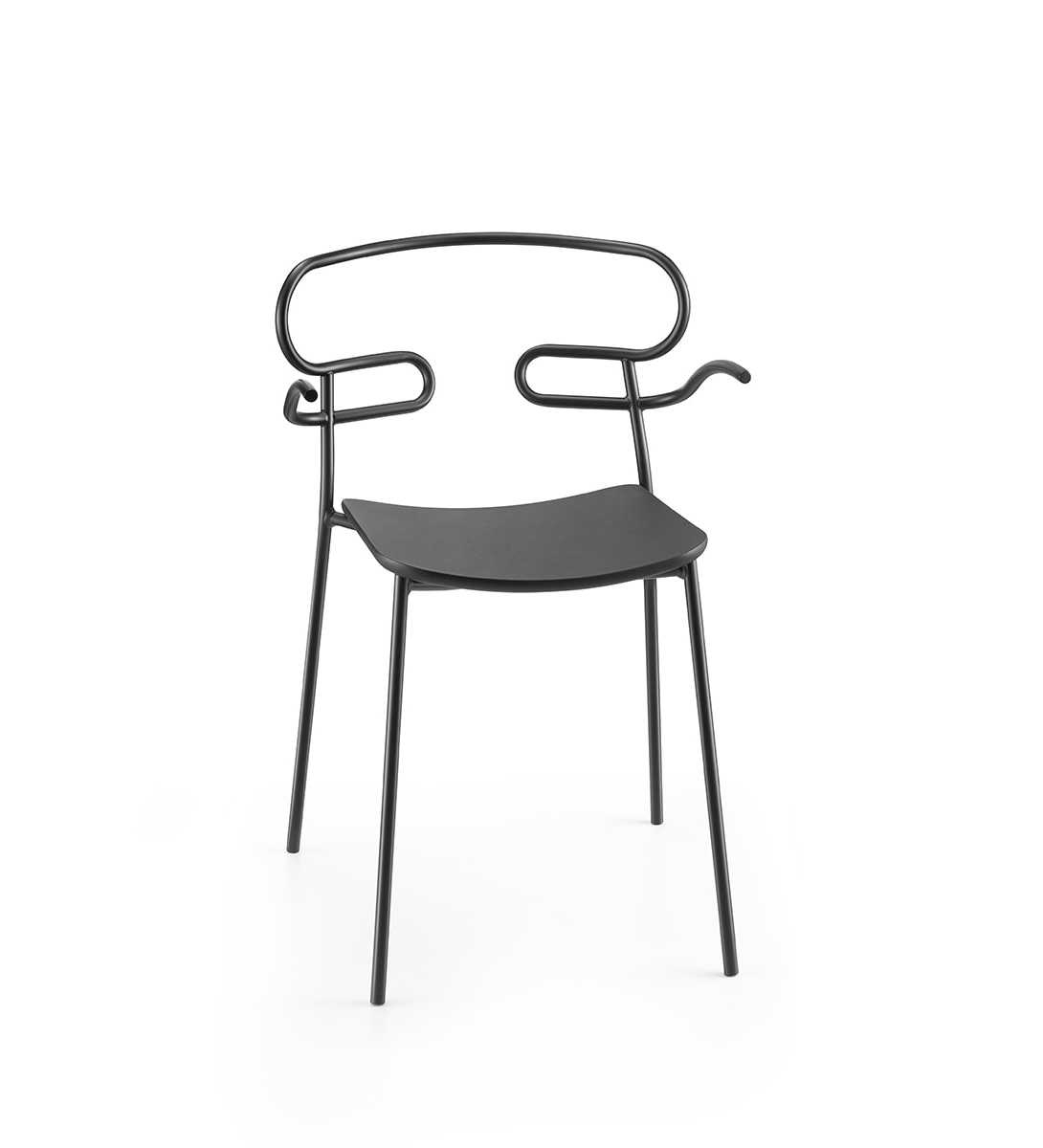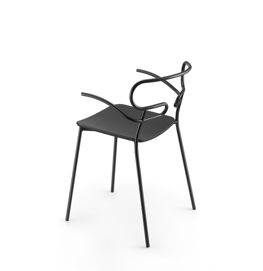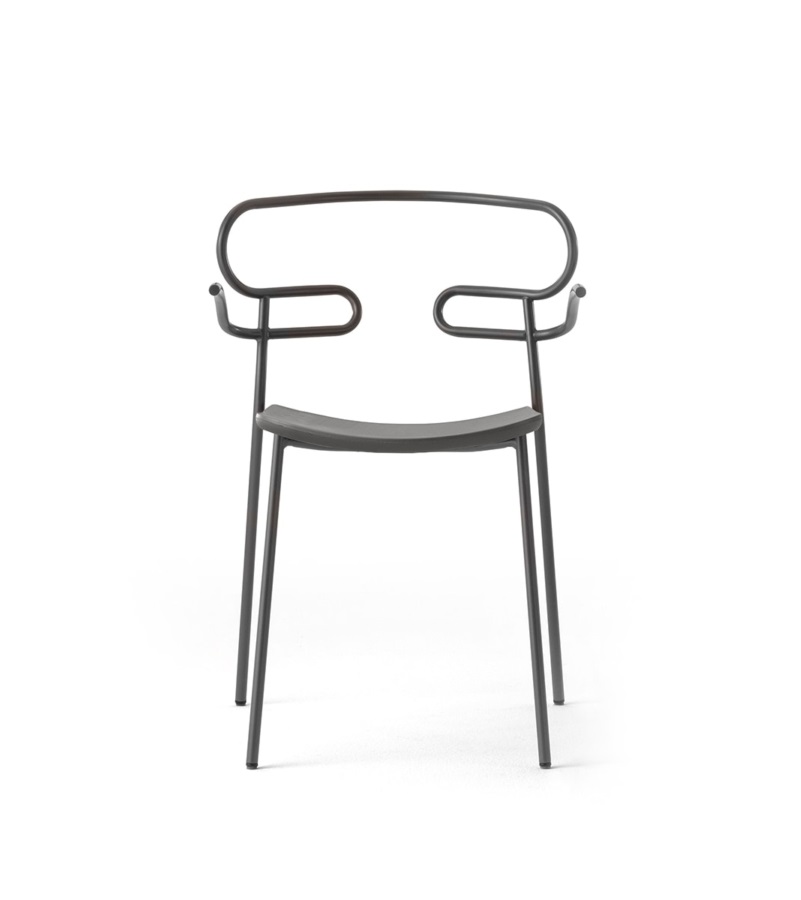 The Genoa chair collection, by talented young designer Cesare Ehr, featuring a stool and a chair with armrests, is also available in an outdoor version. The distinguishing element is the ‘one-line’ backrest, obtained by curving a single metal tube which – with its virtually endless wavy line, also extended to the armrests in this new version – is an elegant addition to every space, bringing a sense of lightness.The outdoor version of the chair will be presented at Salone del Mobile 2019. With integral body in polyurethane, mass painted in the mould, it is also available with a woven backrest in coloured rope to enhance both its look and the level of comfort provided.The frame in powder-coated tubular metal comes in a wide variety of colours; the slightly curved seat – for the indoor versions – is in ash wood (left au naturel or painted) or upholstered with various fabrics, leather or eco-leather.