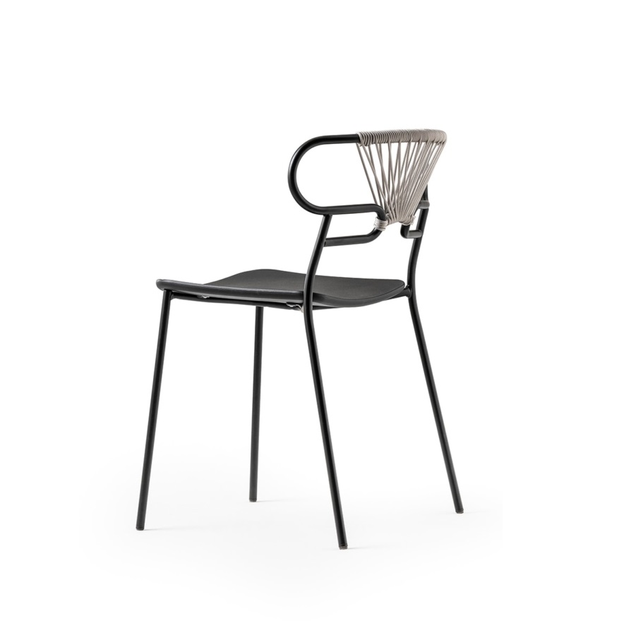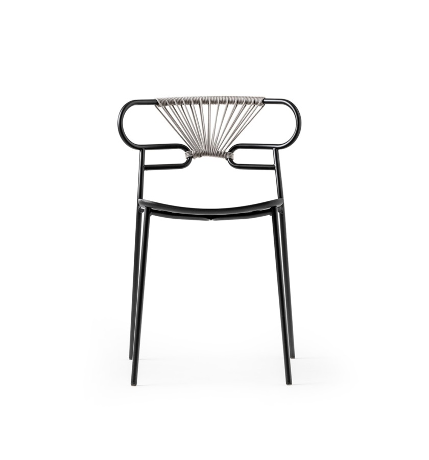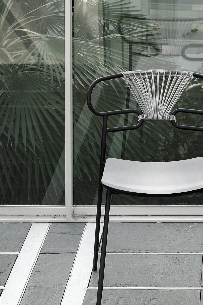 The Genoa chair collection, by talented young designer Cesare Ehr, featuring a stool and a chair with armrests, is also available in an outdoor version. The distinguishing element is the ‘one-line’ backrest, obtained by curving a single metal tube which – with its virtually endless wavy line, also extended to the armrests in this new version – is an elegant addition to every space, bringing a sense of lightness.The outdoor version of the chair will be presented at Salone del Mobile 2019. With integral body in polyurethane, mass painted in the mould, it is also available with a woven backrest in coloured rope to enhance both its look and the level of comfort provided.The frame in powder-coated tubular metal comes in a wide variety of colours; the slightly curved seat – for the indoor versions – is in ash wood (left au naturel or painted) or upholstered with various fabrics, leather or eco-leather.