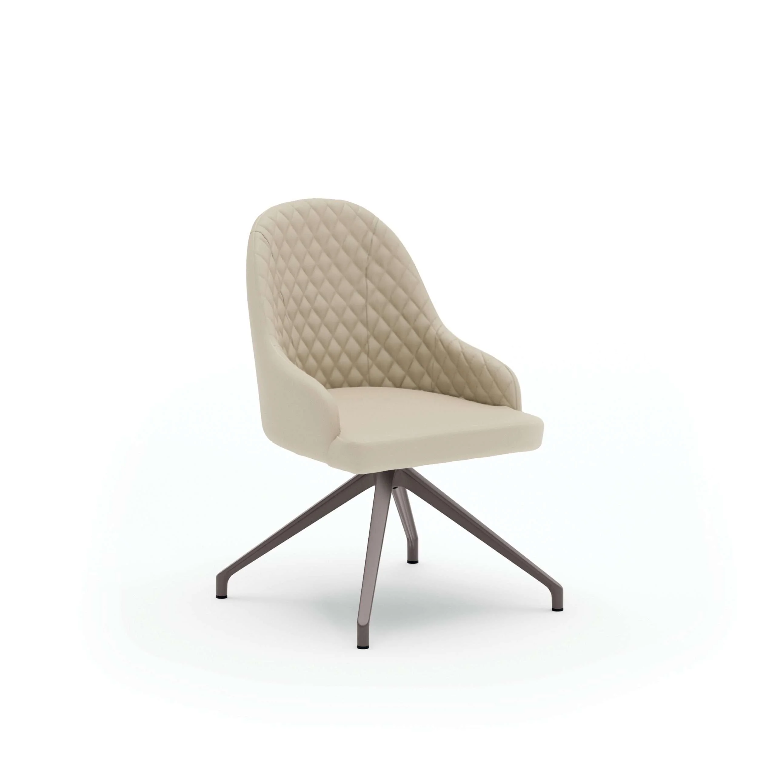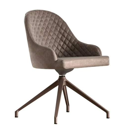 Πλήρως επενδυμένη καρέκλα με υποβραχιόνια σε διάφορα φινιρίσματα, καπιτονέ εσωτερικό πλάτης. Περιστρεφόμενη κατασκευή σε βαμμένο μέταλλο.