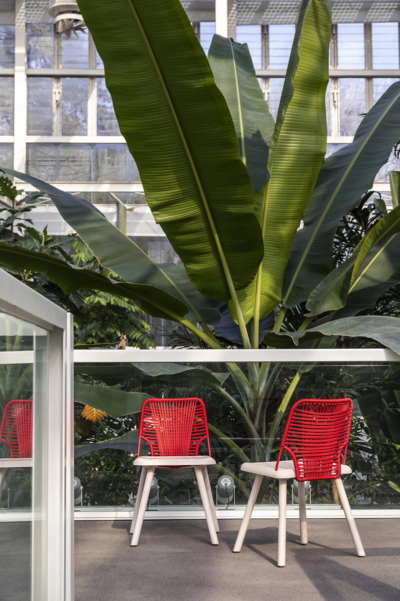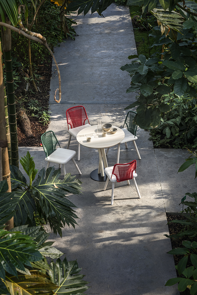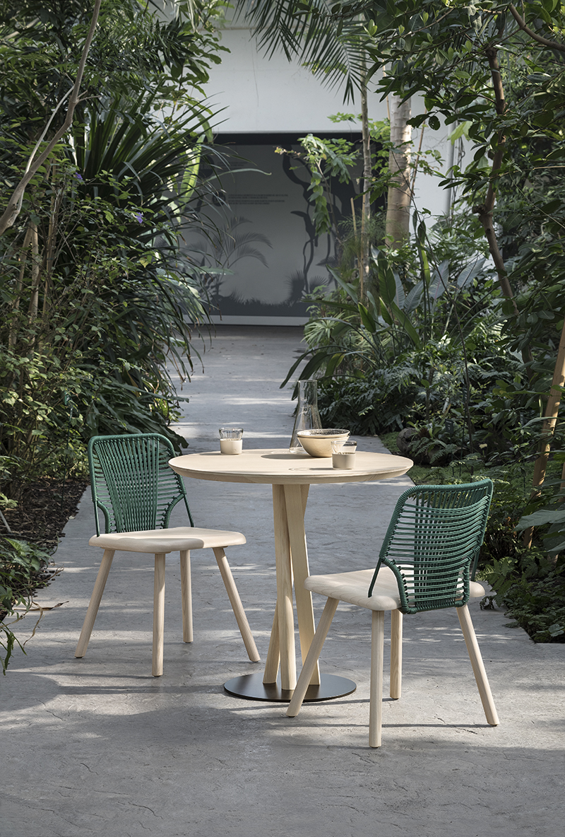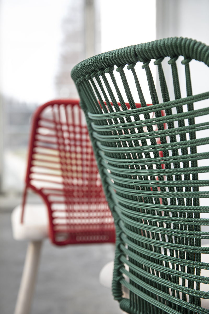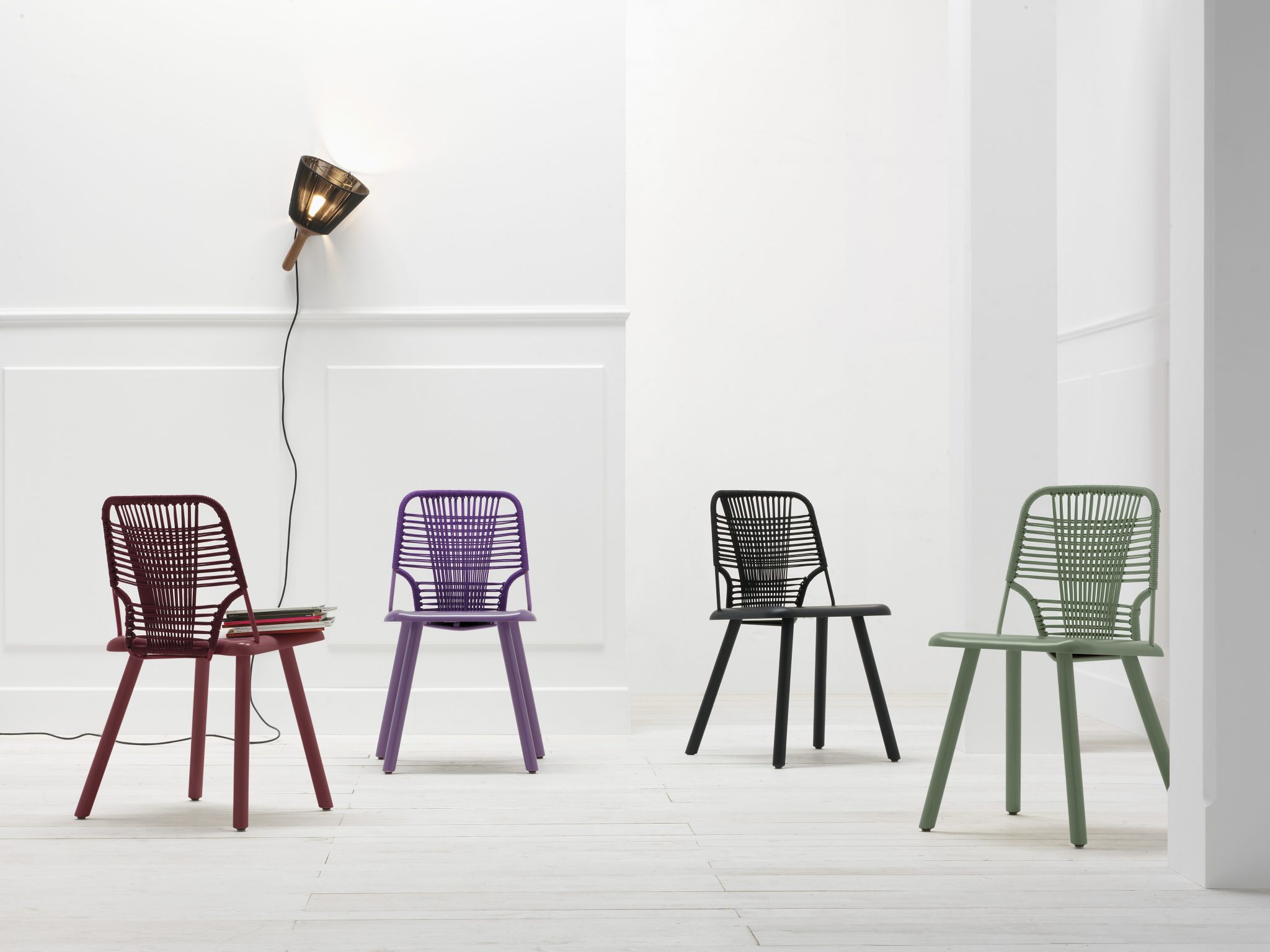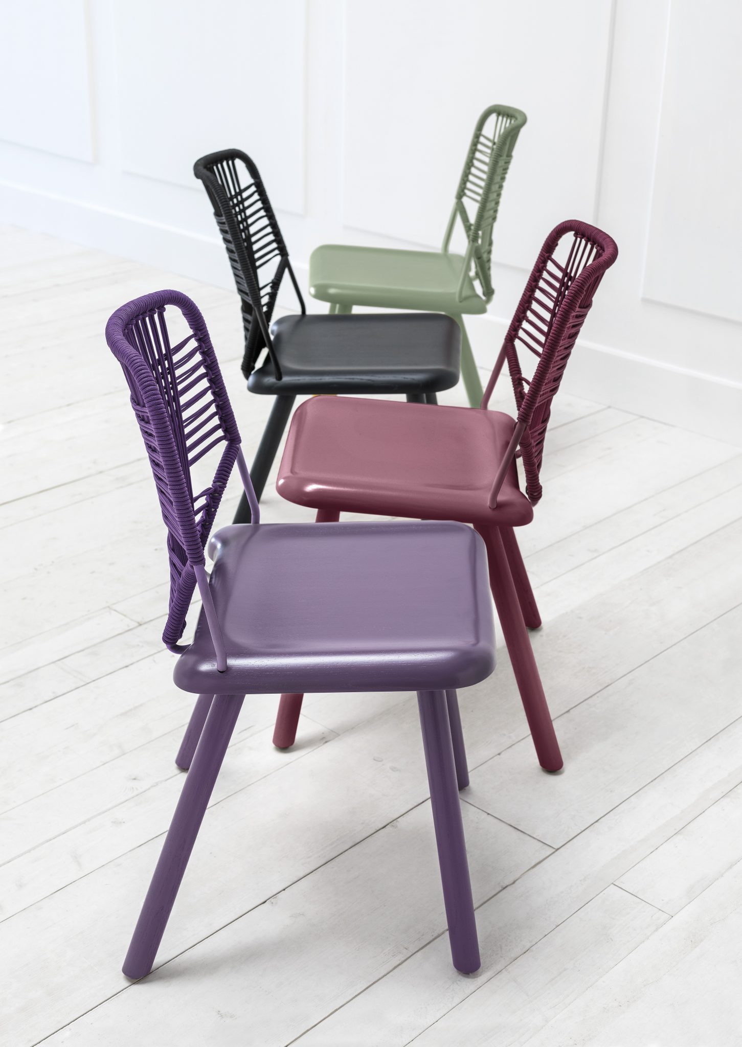 Hybridisation is the concept on which the Jackie collection is based. Designed by Emilio Nanni, it is a chair in which the stable solid wood frame meets an inviting metal rod backrest covered in a woven rope design.This year Jackie is enhanced by new, extremely bold and distinctive colours, in a virtuous, harmonious dialogue between heterogeneous materials, ethnic touches and artisan processing techniques. All to create an innovative design for the perfect chair to make every contract environment stand out, with style.