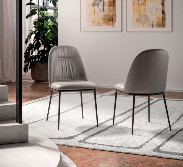 Καρέκλα με επενδυμένη πλάτη και κάθισμα σε διάφορα φινιρίσματα. Βαμμένη μεταλλική κατασκευή.