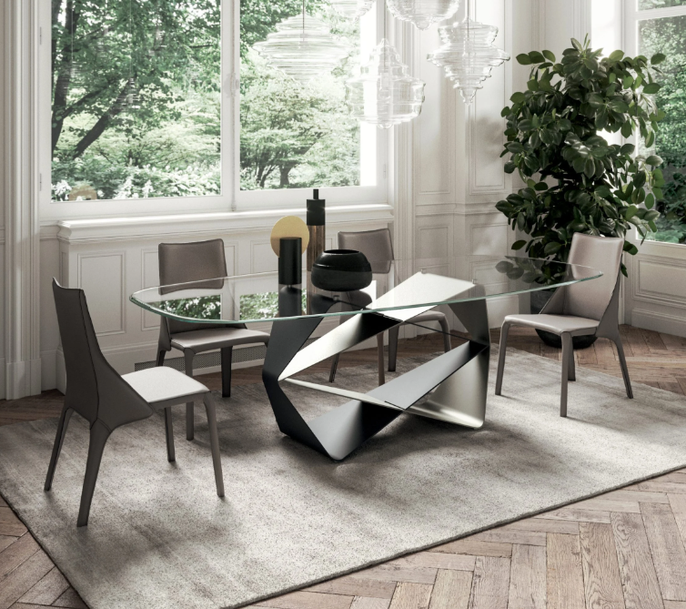 Το κάθισμα Kite αιωρείται αιωρούμενα στο σπίτι σας. Οι έντονες γεωμετρίες του δέρματος του δίνουν ένα σχήμα φτερών για να σχηματίσουν το σχέδιο ενός χαρταετού.