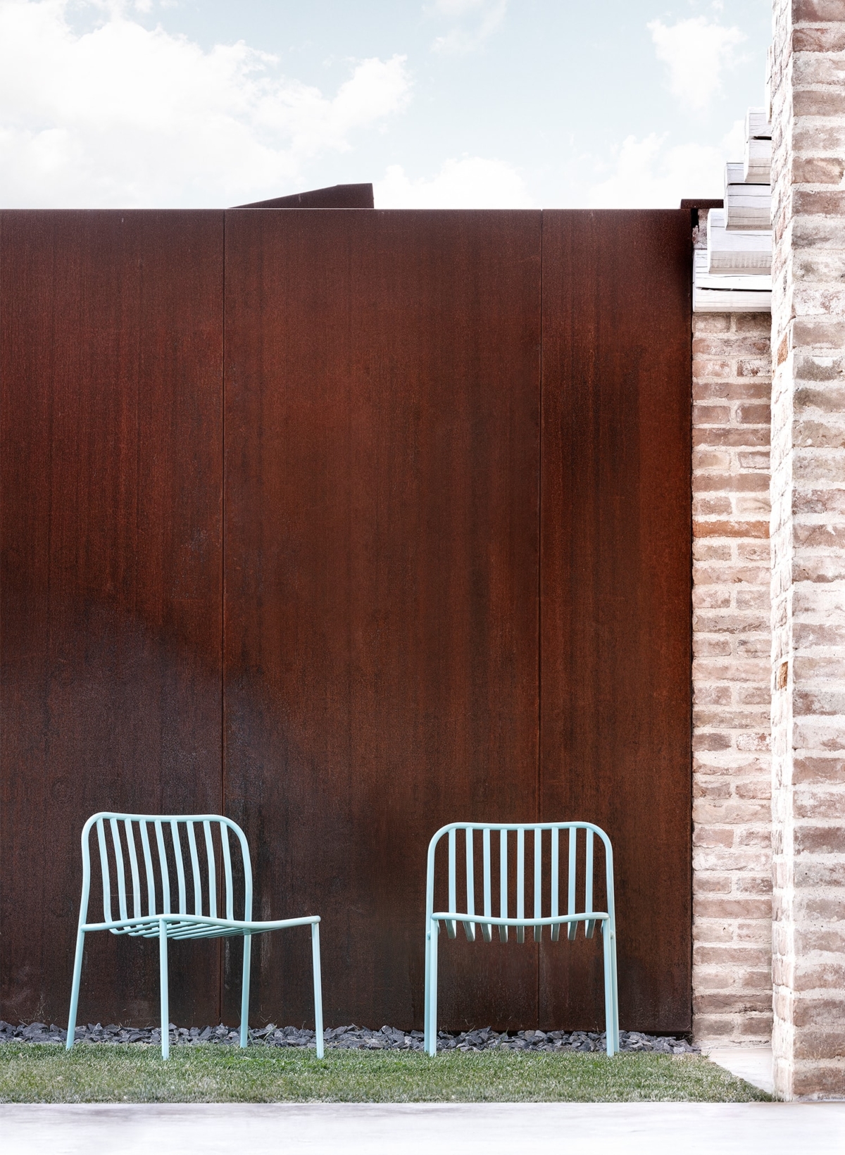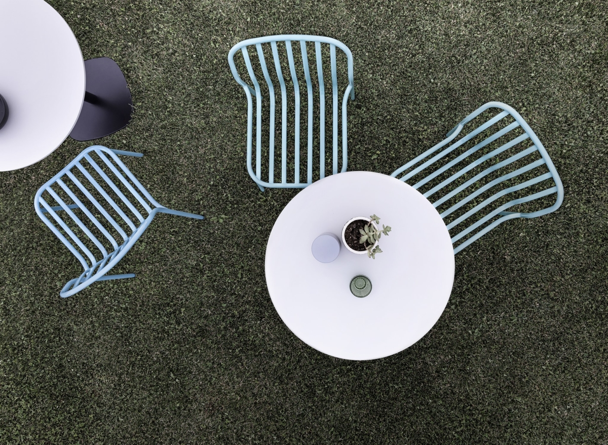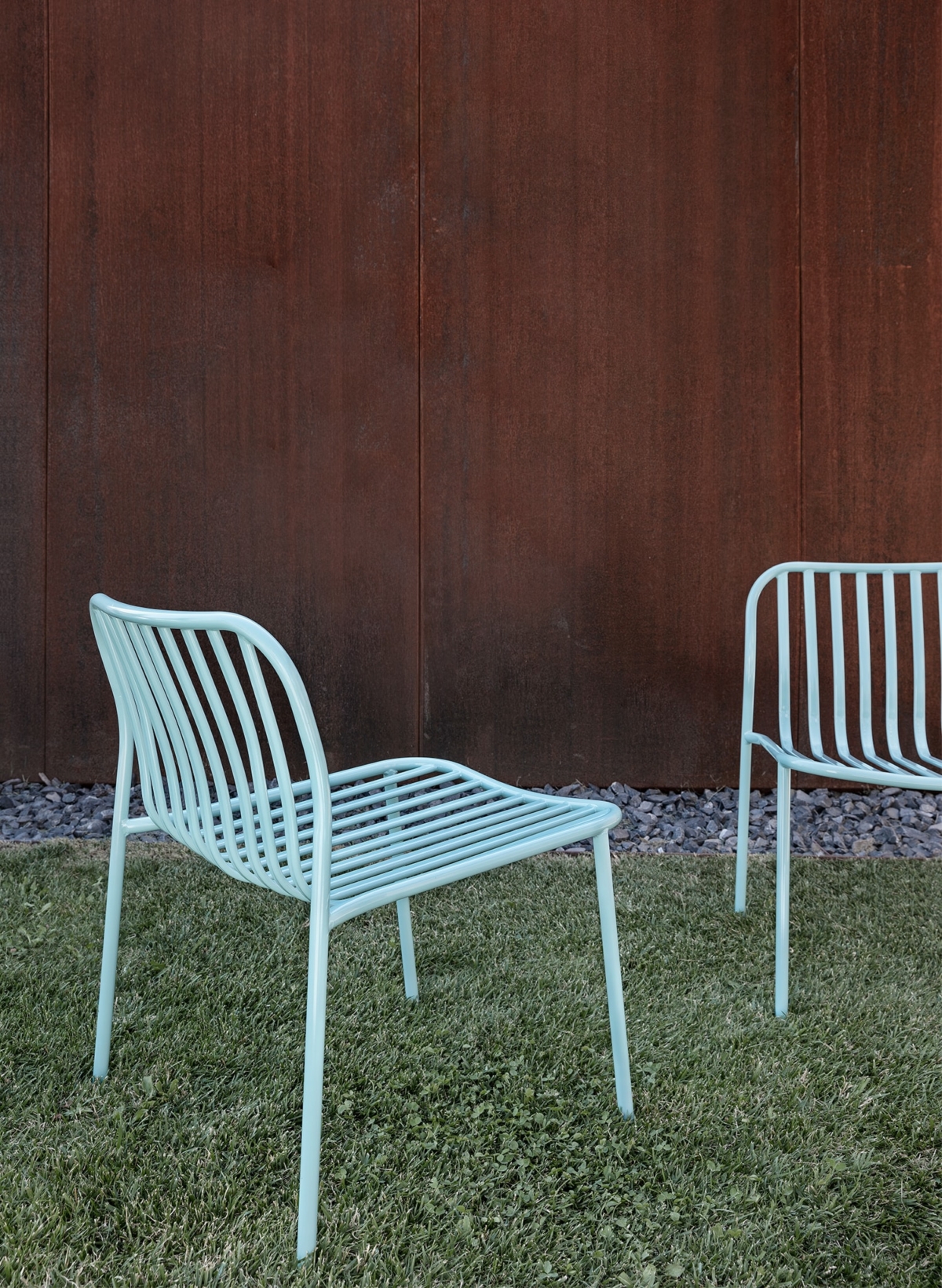 A collection made entirely of metal, with minimalist design and maximum functionality. The backrest and seat of Metis Line feature a wire design with vertical ovals, which sinuously and harmoniously accompany the outline of the frame, adapting to the bodyto ensure comfort. The chair with or without armrests, the lounge version with or without armrests and the stool in two heights bring ergonomic forms and an infinity of colour options to any indoor or outdoor space.