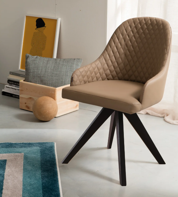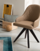 Πλήρως επενδυμένη καρέκλα με υποβραχιόνια σε διάφορα φινιρίσματα, καπιτονέ εσωτερικό πλάτης. Βαμμένη δομή οξιάς.