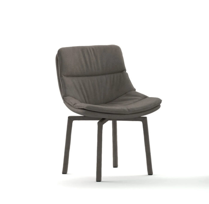 Πλήρως επενδυμένη καρέκλα, συμπεριλαμβανομένης της δομής, σε διάφορα φινιρίσματα. Περιστρεφόμενη δομή με ελατήριο επαναφοράς.