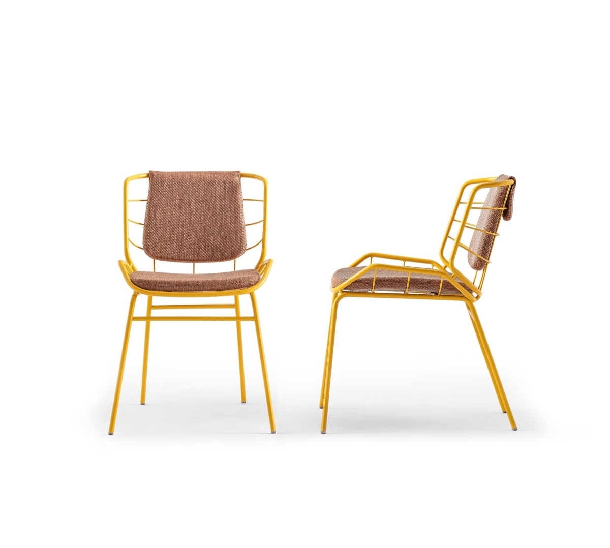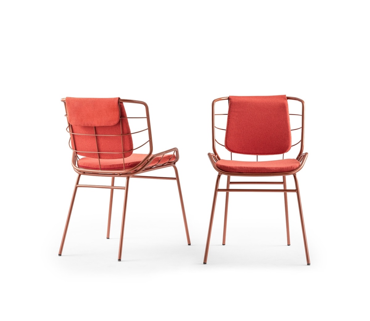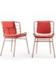 The harmonic, enveloping shells in powder-coated tubular metal that define the Skin armchair – designed by Giacomo Cattani – evolve and transform to compose a true collection.A chair, a stool, two tables, a low one and a high one, and the ever increasing range of colours available breathe life into a collection of furniture that fosters chatting and relaxation; welcoming, geometric patterns designed to meet the requirements of contemporary projects geared more and more towards a mix of indoor and outdoor.The play on colours – a plus point that defines the Trabà production – can be stressed by the countless options open when it comes to the shades and fabrics of the body: a wide selection for indoor and outdoor environments, eco-leather for creating fun tone-on-tone seats or bolder contrasting colour effects.Skin, perfect for adding a touch of personality to sophisticated residential and contract projects: like a second skin for gardens, patios, terrace-bars, verandas and bow-windows.