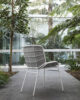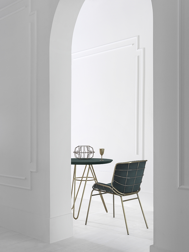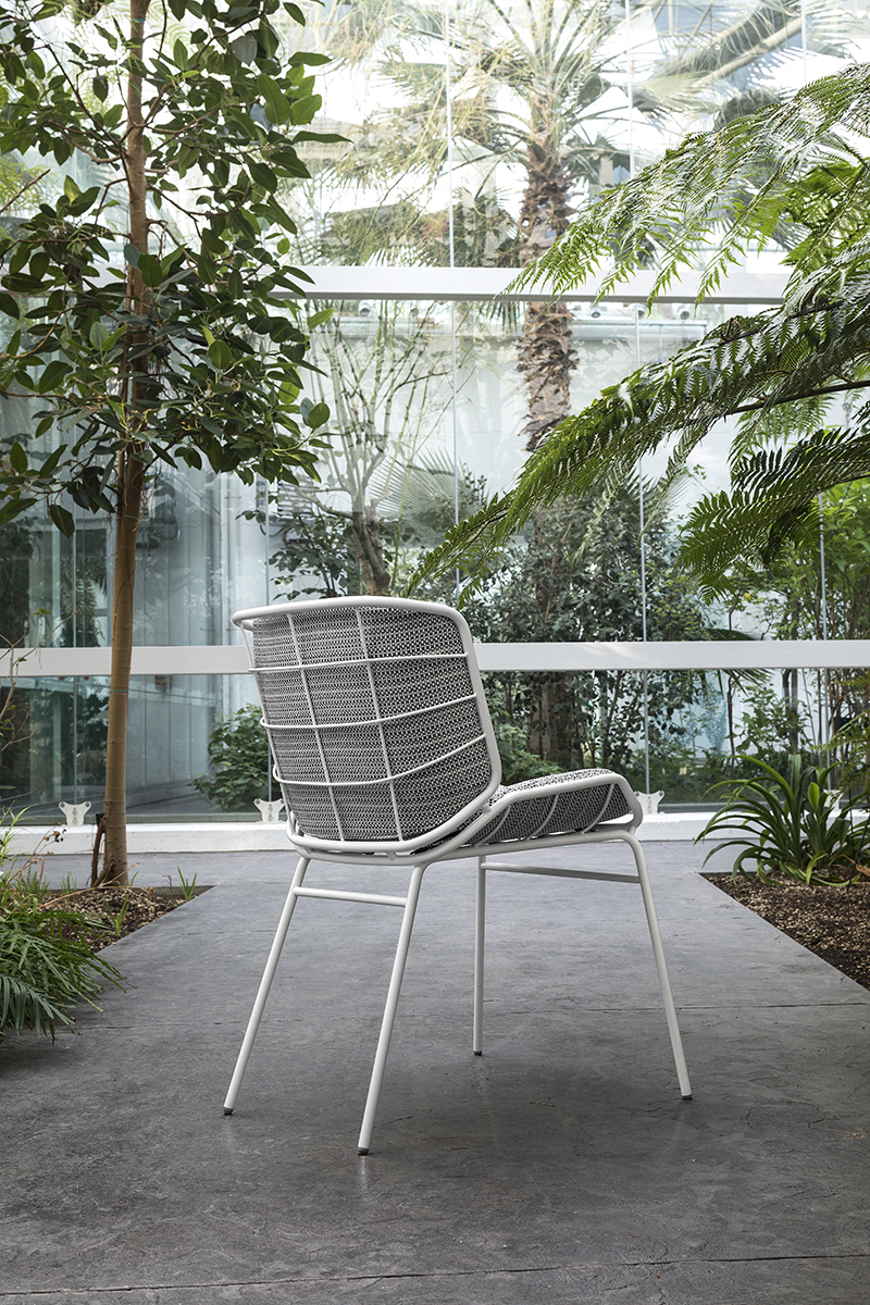 The harmonic, enveloping shells in powder-coated tubular metal that define the Skin armchair – designed by Giacomo Cattani – evolve and transform to compose a true collection.A chair, a stool, two tables, a low one and a high one, and the ever increasing range of colours available breathe life into a collection of furniture that fosters chatting and relaxation; welcoming, geometric patterns designed to meet the requirements of contemporary projects geared more and more towards a mix of indoor and outdoor.The play on colours – a plus point that defines the Trabà production – can be stressed by the countless options open when it comes to the shades and fabrics of the body: a wide selection for indoor and outdoor environments, eco-leather for creating fun tone-on-tone seats or bolder contrasting colour effects.Skin, perfect for adding a touch of personality to sophisticated residential and contract projects: like a second skin for gardens, patios, terrace-bars, verandas and bow-windows.