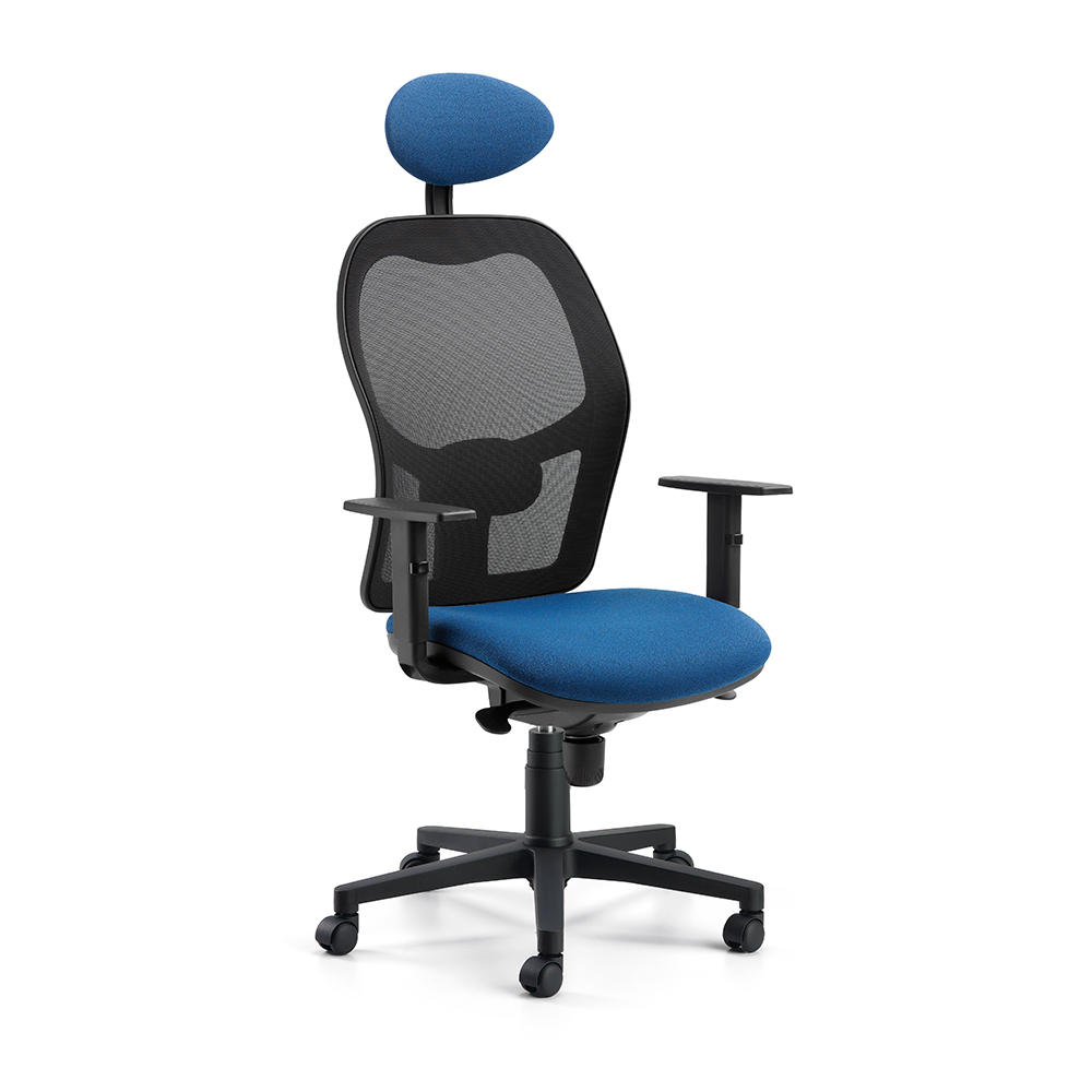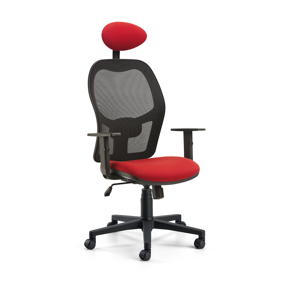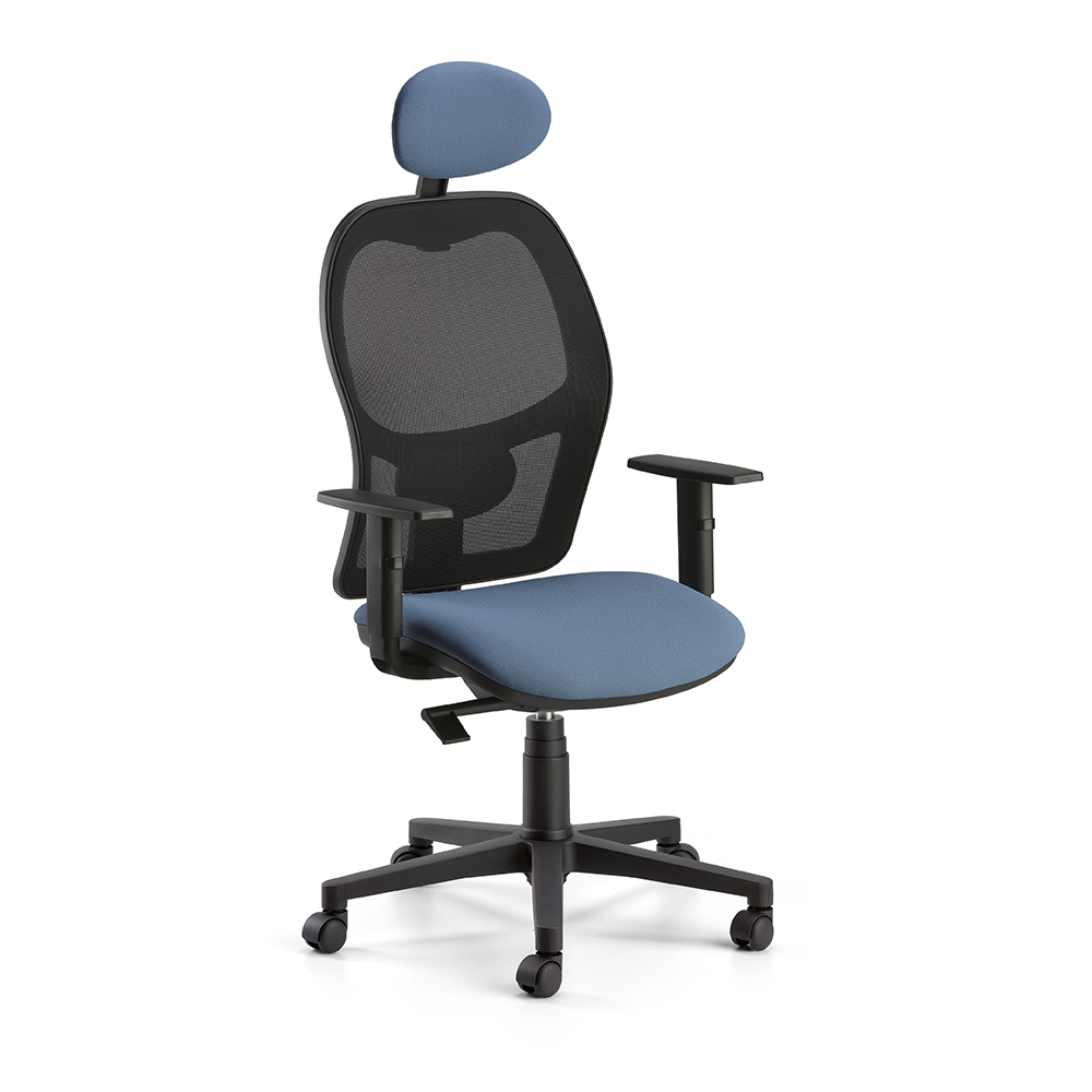 Κάθισμα εργασίας με διχτυωτή πλάτη διατίθεται επίσης με προσκέφαλο, περιστρεφόμενη βάση, μηχανισμό και ρυθμιζόμενα υποβραχιόνια.