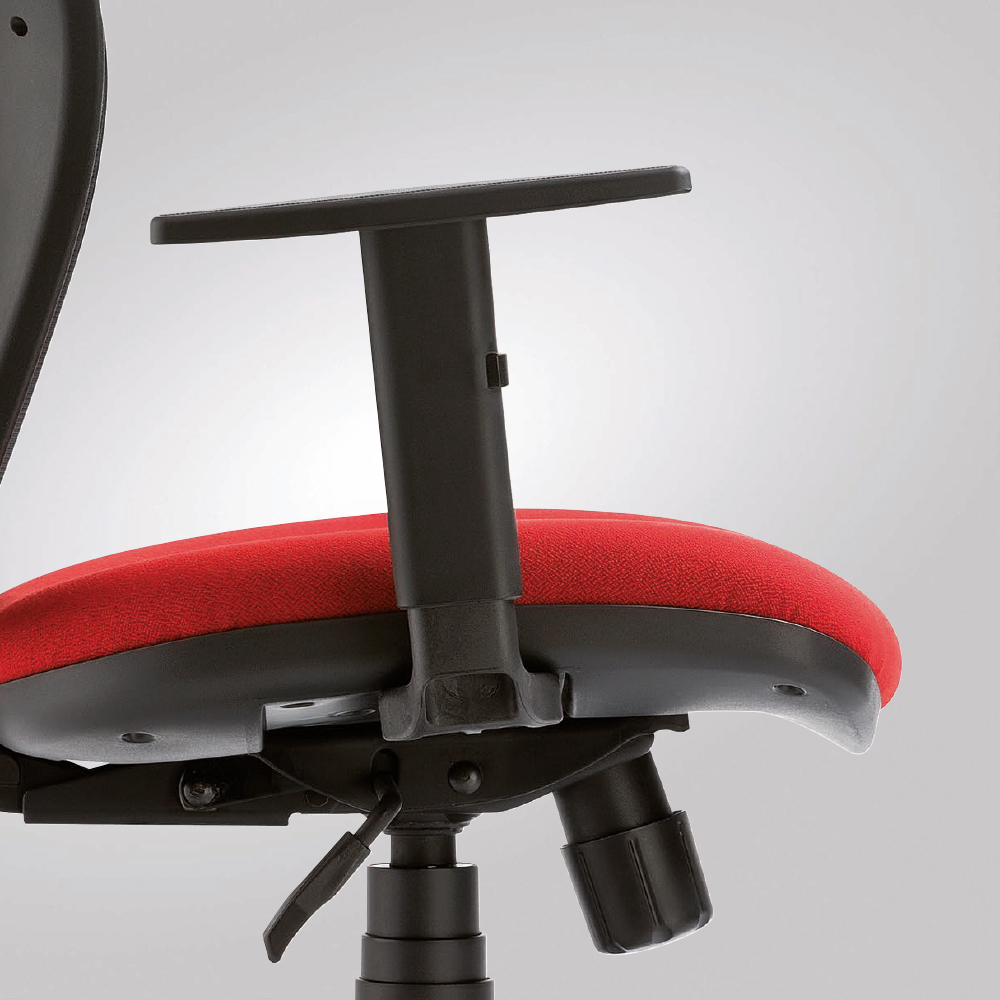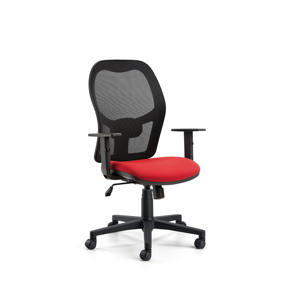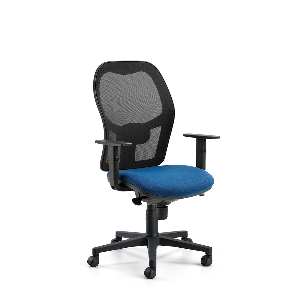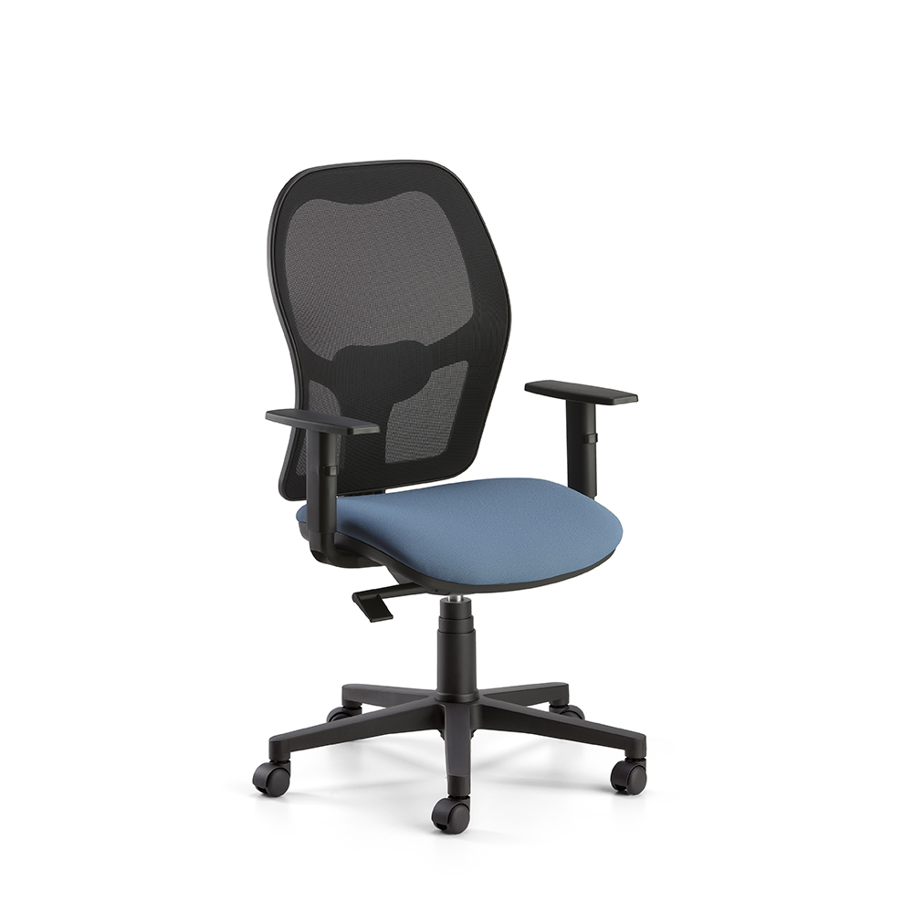 Task seat with mesh backrest also available with headrest, swivel base, mechanism and adjustable armrests.