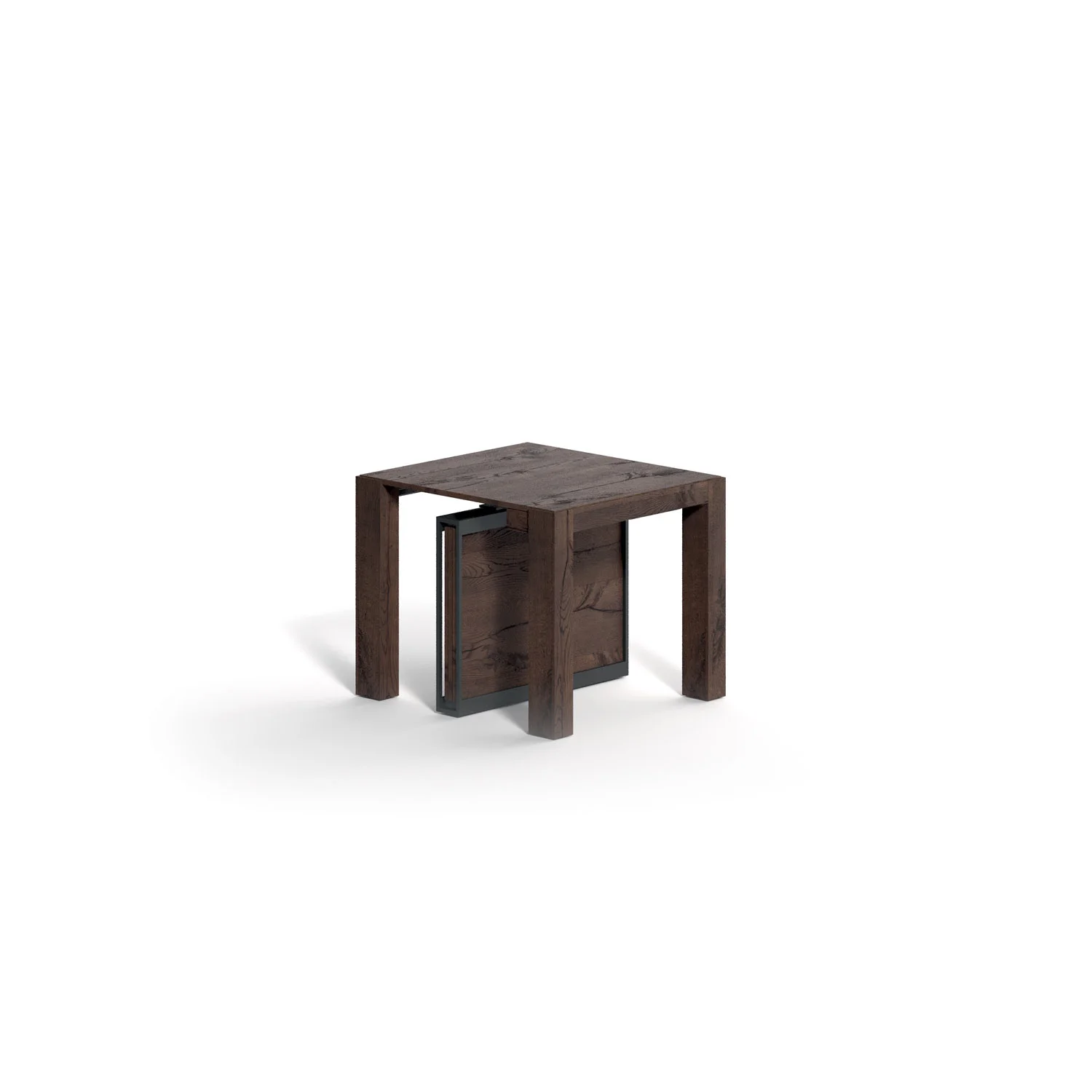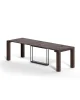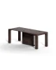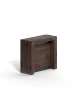 Επεκτάσιμο ξύλινο τραπέζι κονσόλας με 4 προεκτάσεις τοποθετημένες στη δομή. Τηλεσκοπικός μηχανισμός αλουμινίου, κεντρικό περιστρεφόμενο πόδι που υποστηρίζει τον μηχανισμό ενώ είναι ανοιχτό. Τροχοί για καλύτερη κίνηση.