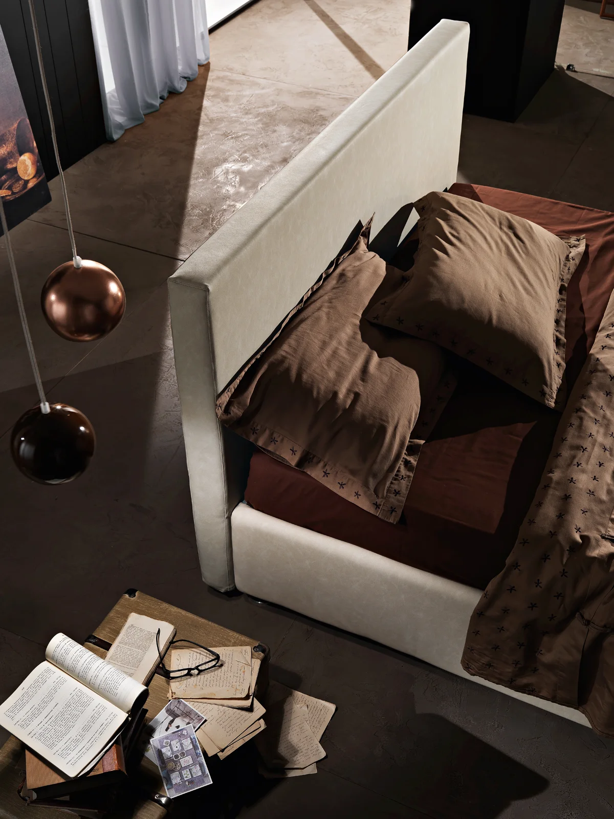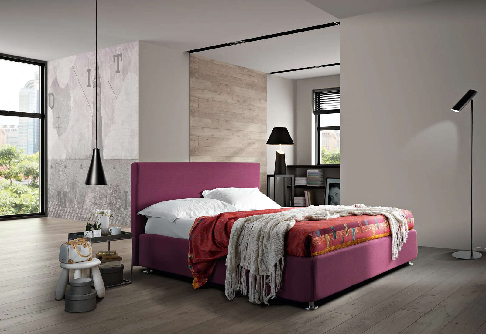 Essential and clean lines for York. A bed with a fresh and very contemporary style. A versatile model, suitable for wearing any type of fabric or eco-friendly leather.