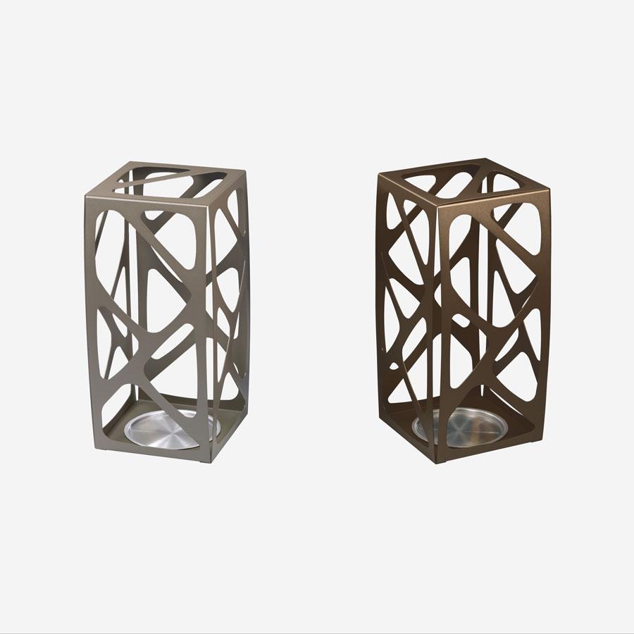 Umbrella stand in painted steel with drip tray in satin stainless steel.