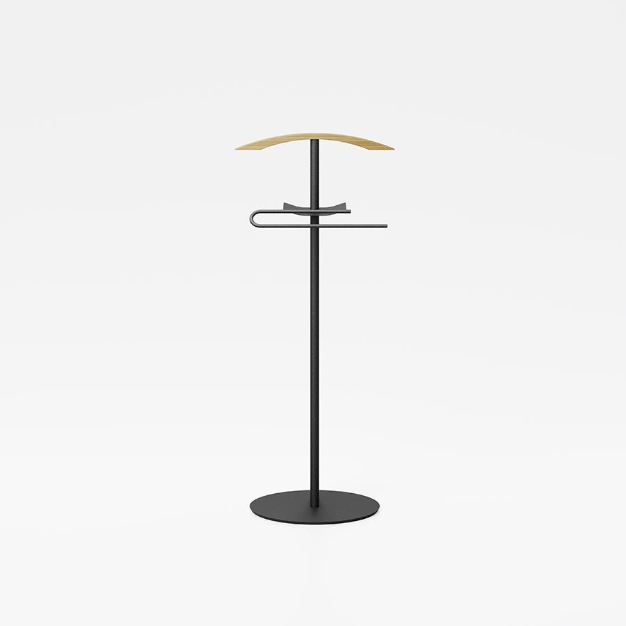 Coat stand with structure in sand-painted steel, details in polycarbonate and aluminium.