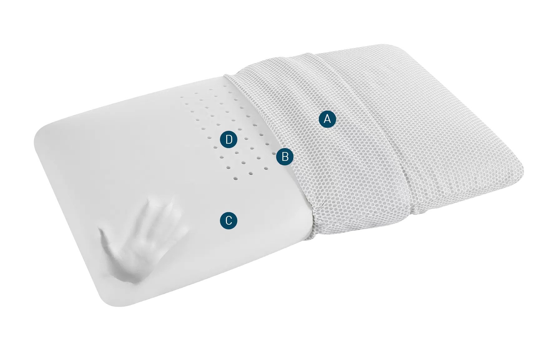 C. Το εσωτερικό του, από αφρό μνήμης Memoform, έχει σχεδιαστεί για να αντιδρά στο βάρος του λαιμού, του κεφαλιού και των ώμων, προσφέροντας μια ευχάριστη αίσθηση ελαφρότητας κατά τη διάρκεια του ύπνου.