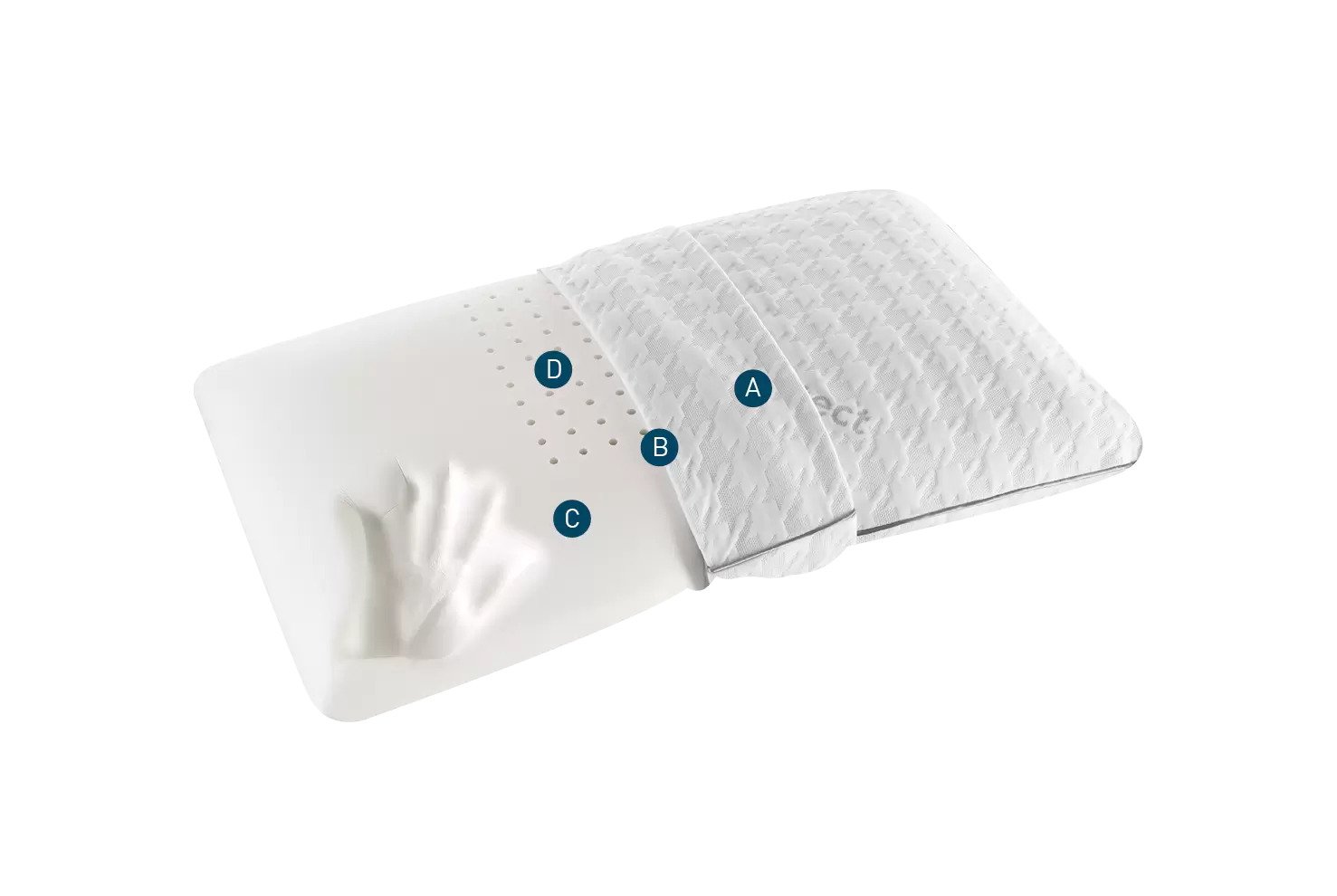 C. Το εσωτερικό αποτελείται από αφρό μνήμης Memoform και έχει σχεδιαστεί για να αντιδρά στο βάρος του λαιμού, του κεφαλιού και των ώμων, προσφέροντας μια ευχάριστη αίσθηση ελαφρότητας καθ΄ όλη τη διάρκεια του ύπνου.