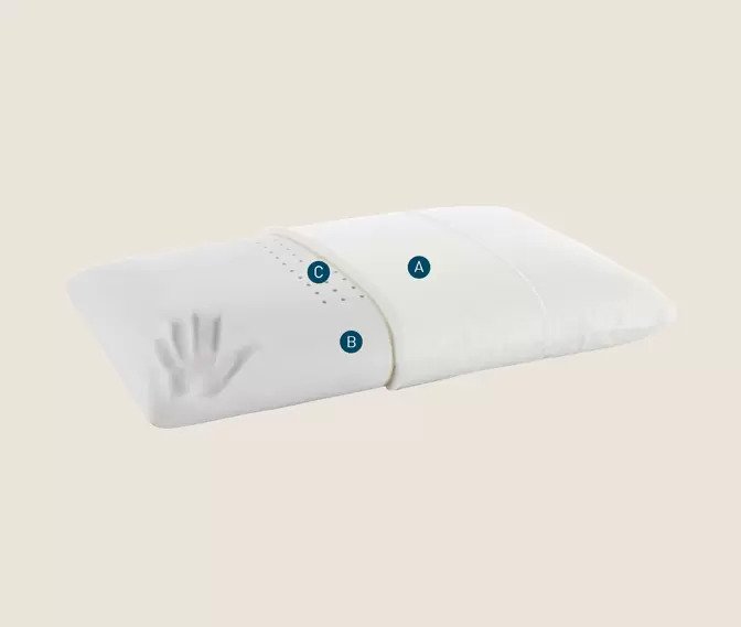 Β. Διαθέτει μια υψηλής πυκνότητας πορώδη κυτταρική δομή που επιτρέπει στον αέρα να το διαπερνά ελεύθερα και να εξασφαλίζει τον καλύτερο αερισμό του, εμποδίζοντας παράλληλα την εμφάνιση υγρασίας και παρασίτων στον πυρήνα του μαξιλαριού.