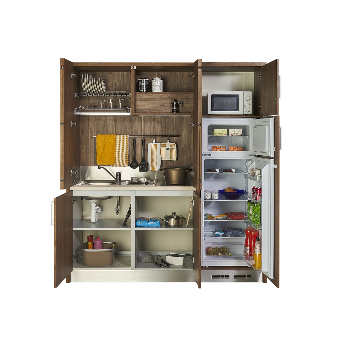 Οι μίνι κουζίνες μας έχουν σχεδιαστεί για επαγγελματική χρήση. Είναι ευέλικτες, συμπαγής και εξοπλισμένες με συσκευές. Η μίνι κουζίνα μας που εξοικονομεί χώρο είναι ιδανική για ξενοδοχεία διαμερισμάτων, φοιτητικά καταλύματα, στούντιο, στρατώνες, πολυκατοικίες και κατοικίες.