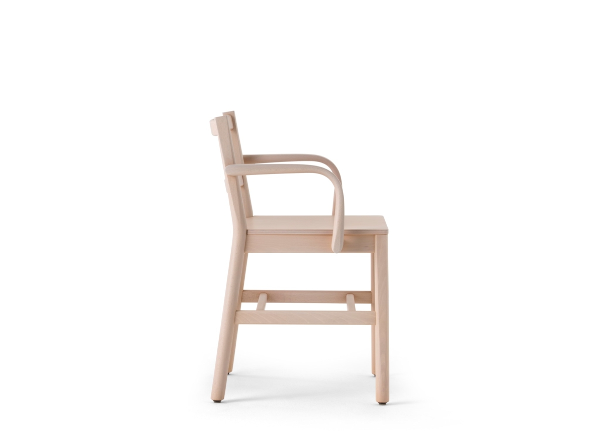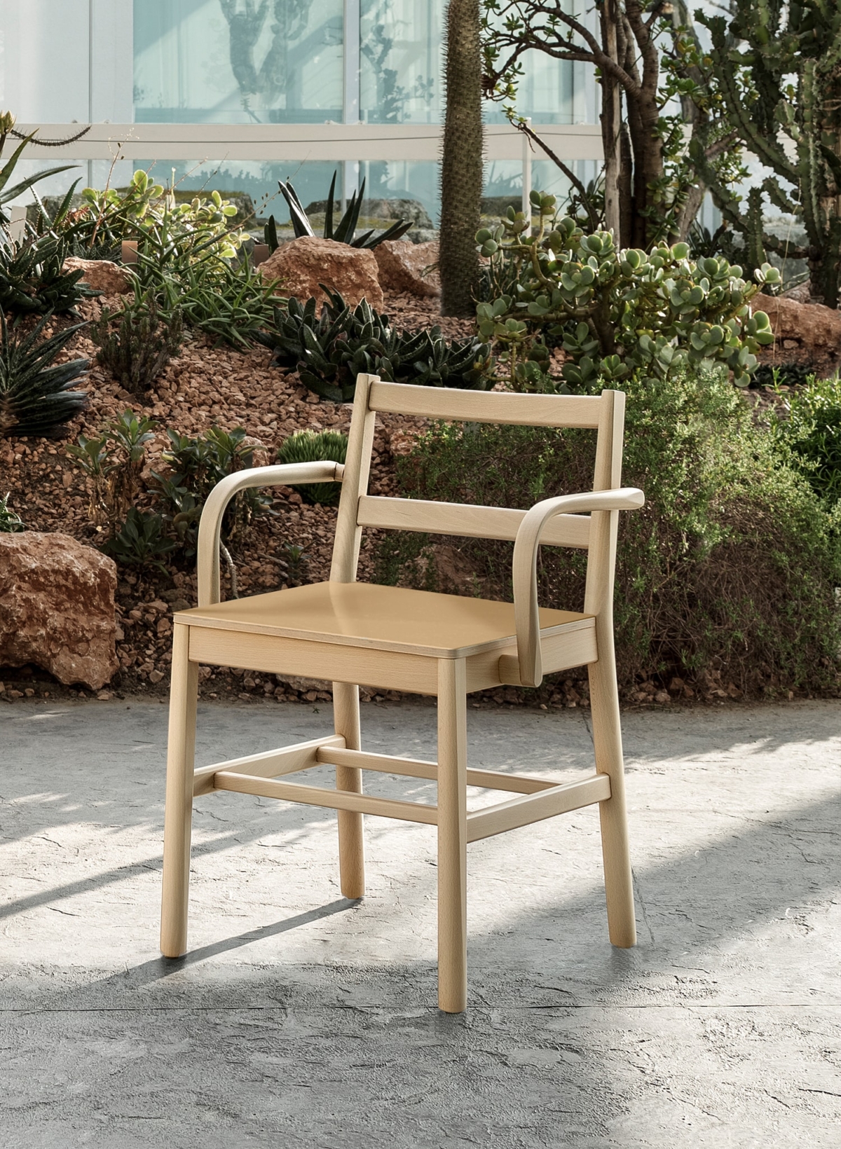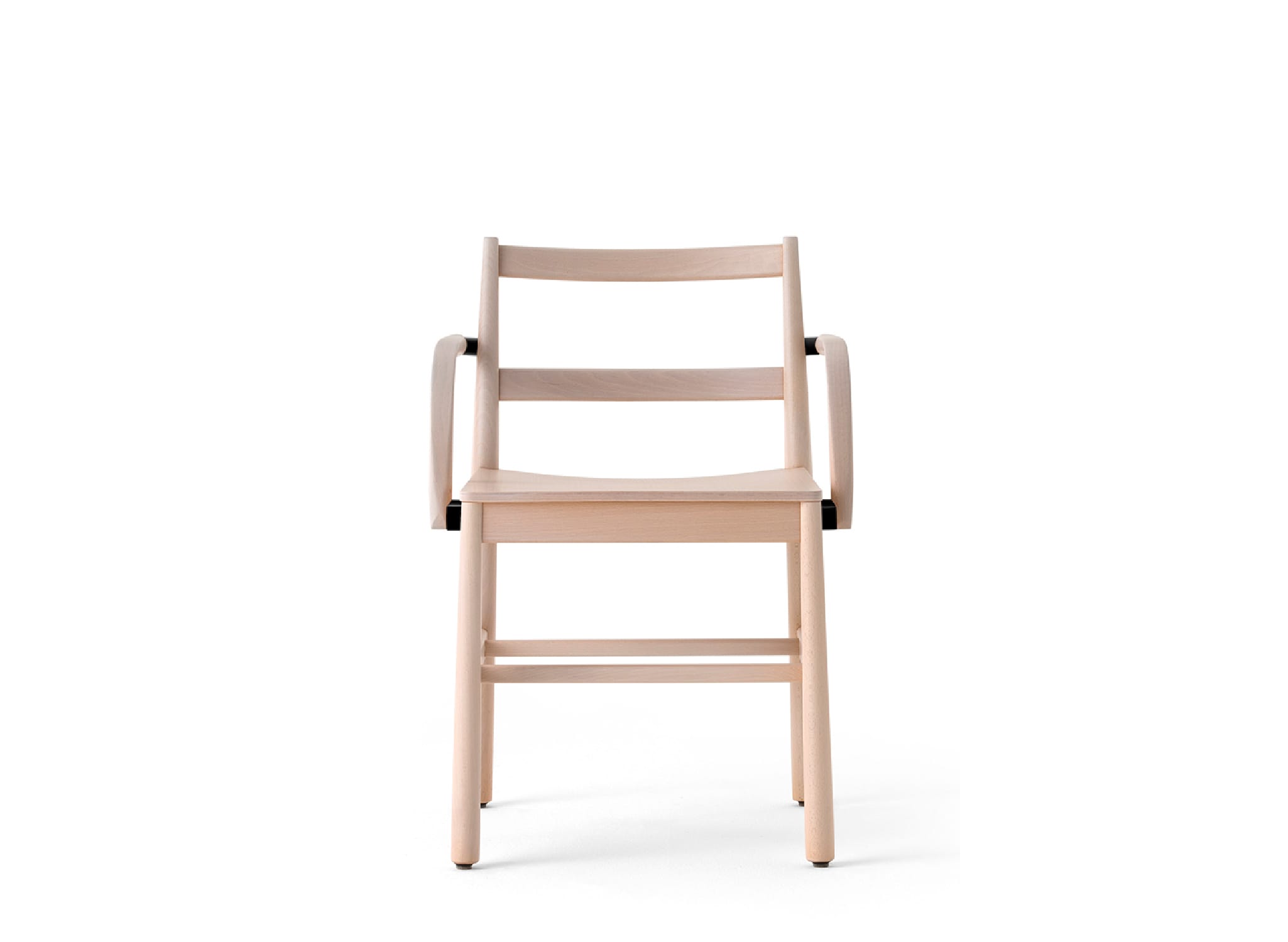 The warmth of reminiscing, of chats with friends; the freshness of tradition with a contemporary twist: Julie constitutes the expert revisitation of the archetypal chair, in which memory and modernity come together. The clean lines of the frame combined with the simplicity of the materials – and of the leather textures or in the stylish range of finishes- amplify the mood poised between memory and modernity.This year Julie is joined by the version with armrests, boosting its comfort level and enhancing a collection that encompasses the all-beechwood design with seat in visible plywood, or with padded seat upholstered in fabric, velvet, eco-leather and natural leather. Leather braids in the seat and backrest, or in rope only for the backrest, are the variants that stress the purity of the shapes and the empty and full effects, creating chairs and stools that are both versatile and welcoming.