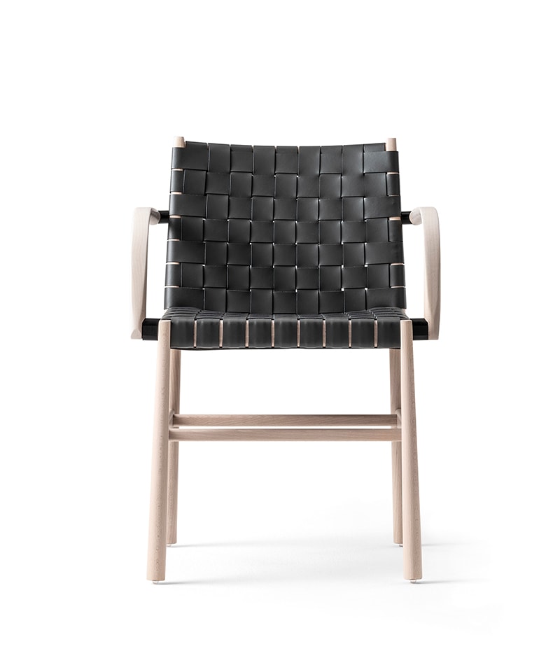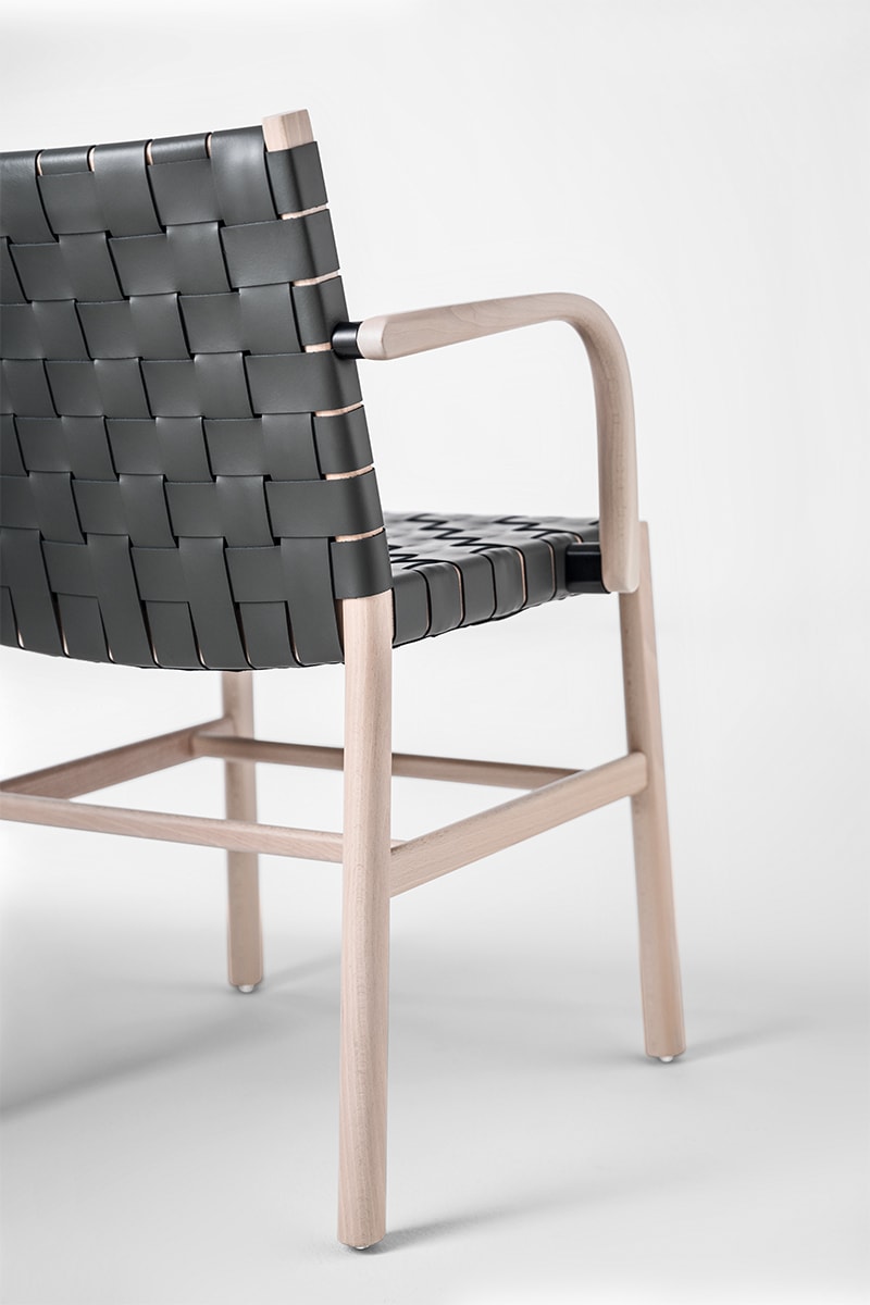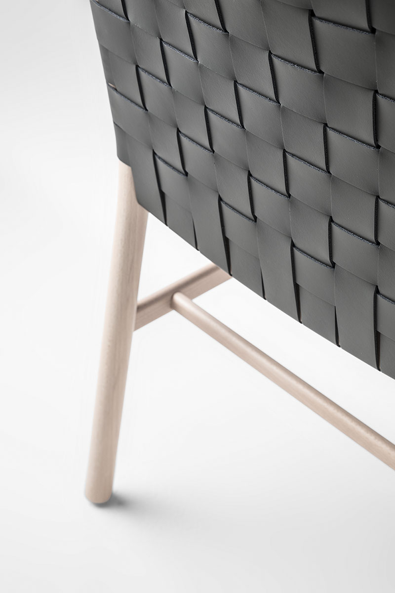 The warmth of reminiscing, of chats with friends; the freshness of tradition with a contemporary twist: Julie constitutes the expert revisitation of the archetypal chair, in which memory and modernity come together. The clean lines of the frame combined with the simplicity of the materials – and of the leather textures or in the stylish range of finishes- amplify the mood poised between memory and modernity.This year Julie is joined by the version with armrests, boosting its comfort level and enhancing a collection that encompasses the all-beechwood design with seat in visible plywood, or with padded seat upholstered in fabric, velvet, eco-leather and natural leather. Leather braids in the seat and backrest, or in rope only for the backrest, are the variants that stress the purity of the shapes and the empty and full effects, creating chairs and stools that are both versatile and welcoming.