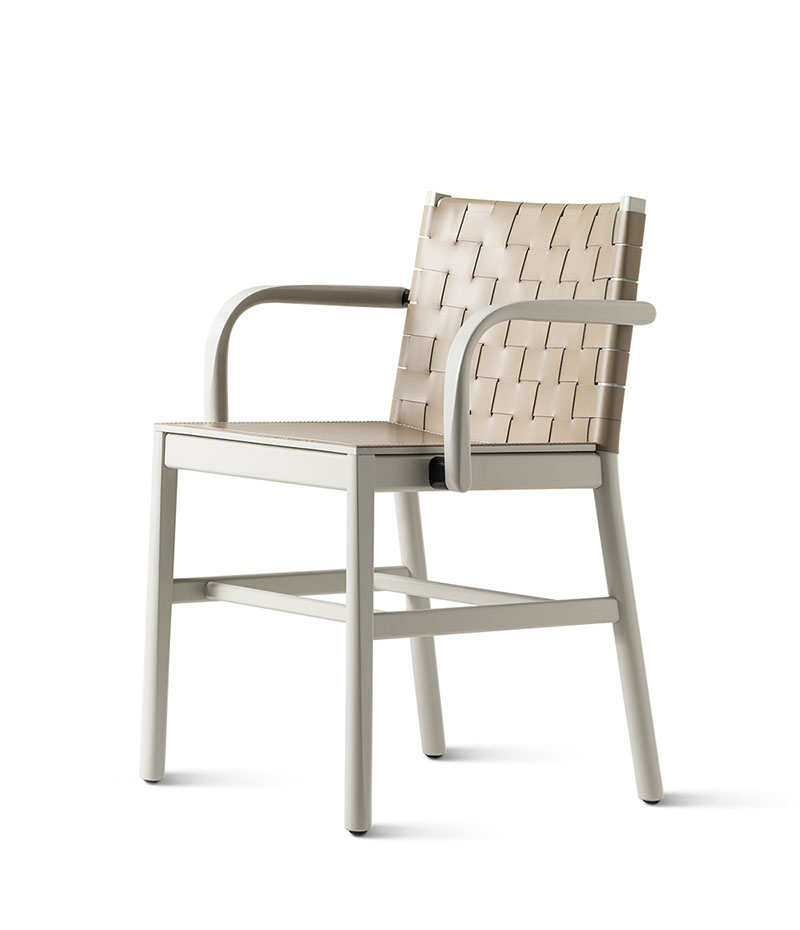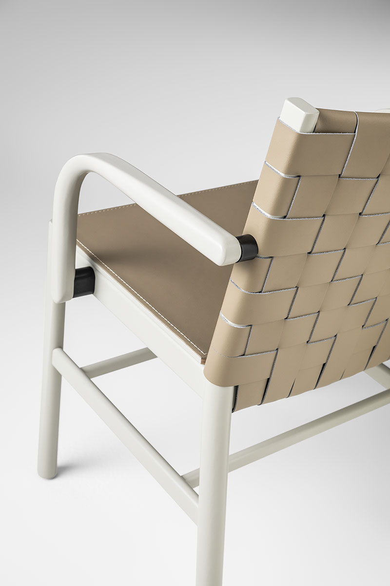 The warmth of reminiscing, of chats with friends; the freshness of tradition with a contemporary twist: Julie constitutes the expert revisitation of the archetypal chair, in which memory and modernity come together. The clean lines of the frame combined with the simplicity of the materials – and of the leather textures or in the stylish range of finishes- amplify the mood poised between memory and modernity.This year Julie is joined by the version with armrests, boosting its comfort level and enhancing a collection that encompasses the all-beechwood design with seat in visible plywood, or with padded seat upholstered in fabric, velvet, eco-leather and natural leather. Leather braids in the seat and backrest, or in rope only for the backrest, are the variants that stress the purity of the shapes and the empty and full effects, creating chairs and stools that are both versatile and welcoming.