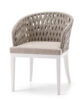 Aluminium armchair covered with flat acrylic rope .Upholstered cushion with acrylic fabric.
