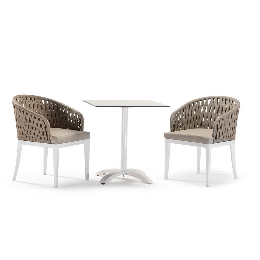 Πολυθρόνα αλουμινίου ντυμένη με επίπεδο ακρυλικό σχοινί. Επενδυμένο μαξιλάρι με ακρυλικό ύφασμα.