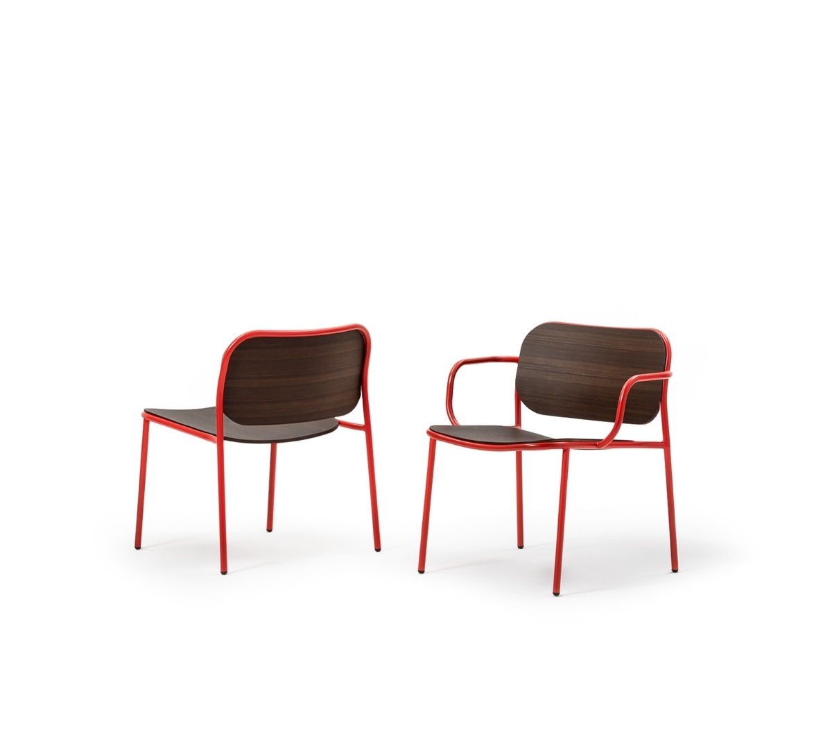 A complete collection for modern spaces inspired by 1950s Scandinavian simplicity. The metal frame with curved lines, customisable in different colours, is combined with the seat and backrest in ash, oak or heat-treated oak. The chair with or without armrests, the lounge chair with or without armrests and the stool in two heights are the models in the Metis Wood range that bring a vintage atmosphere and timeless style to any interior space.
