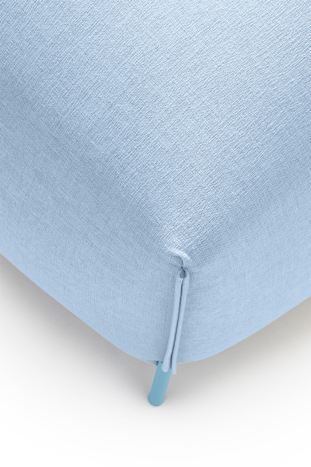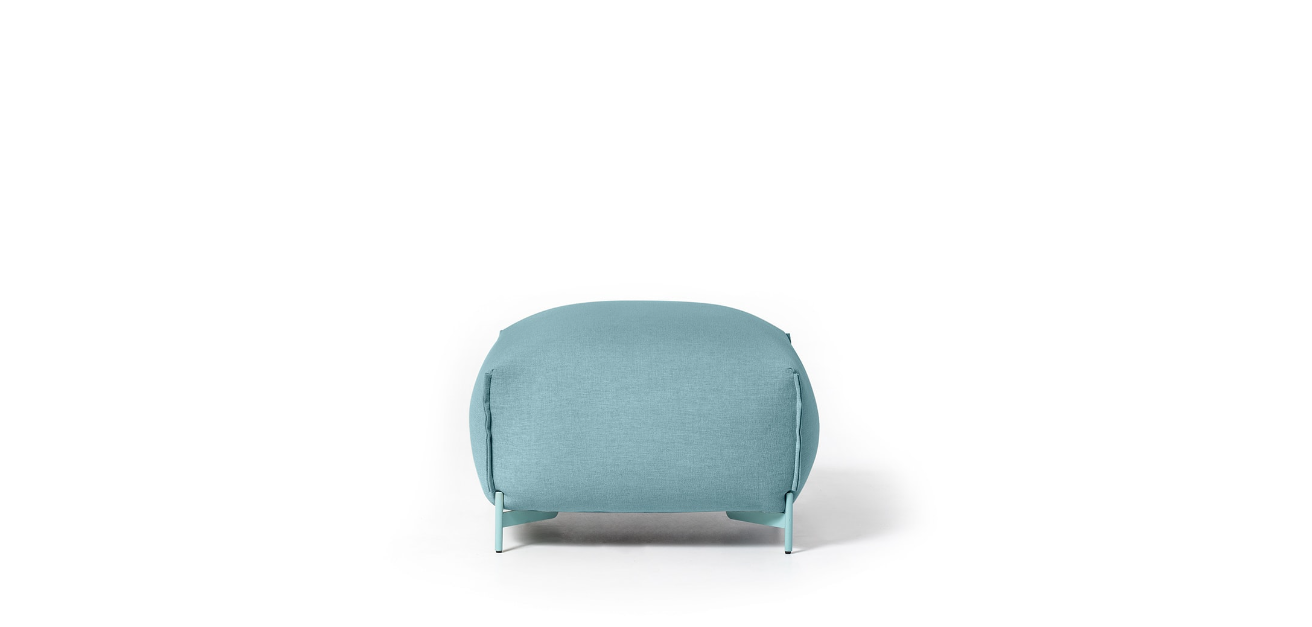 Available in two sizes, Mochi Pouf is the perfect comfort and style accessory for indoor and outdoor spaces. Its generous shape and plump padding are supported by slender painted metal feet and covered with fabric, leather, eco-leather or velvet. It can be used individually in an informal corner or to extend the comfort of a sofa, or in colour-coordinated multiples to create an island of relaxation.