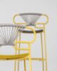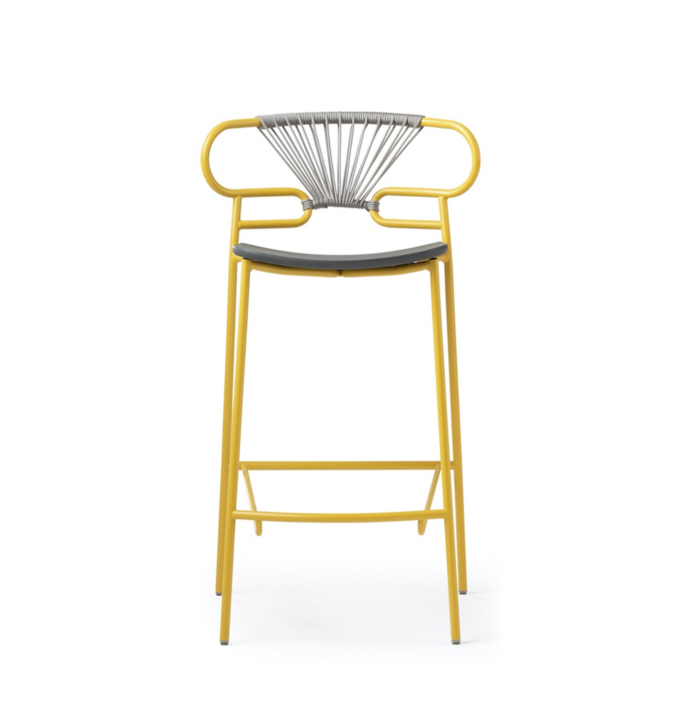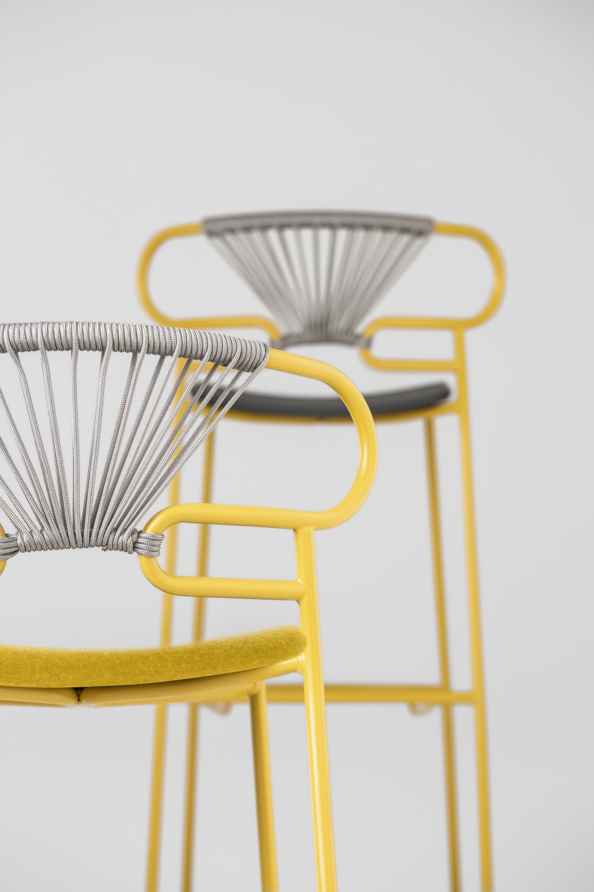The Genoa chair collection, by talented young designer Cesare Ehr, featuring a stool and a chair with armrests, is also available in an outdoor version. The distinguishing element is the ‘one-line’ backrest, obtained by curving a single metal tube which – with its virtually endless wavy line, also extended to the armrests in this new version – is an elegant addition to every space, bringing a sense of lightness.The outdoor version of the chair will be presented at Salone del Mobile 2019. With integral body in polyurethane, mass painted in the mould, it is also available with a woven backrest in coloured rope to enhance both its look and the level of comfort provided.The frame in powder-coated tubular metal comes in a wide variety of colours; the slightly curved seat – for the indoor versions – is in ash wood (left au naturel or painted) or upholstered with various fabrics, leather or eco-leather.