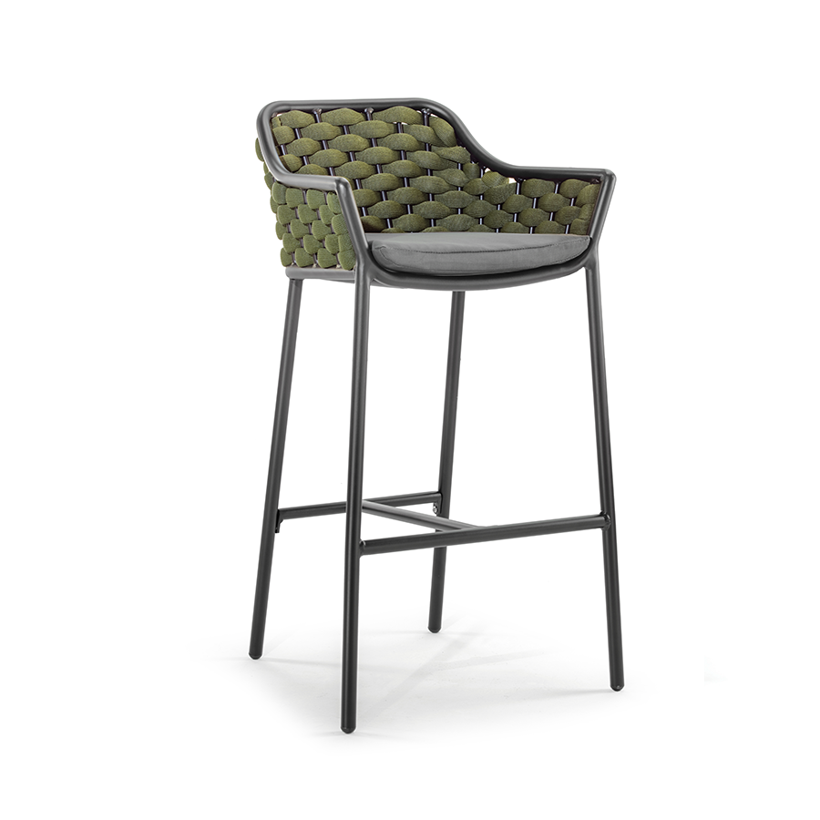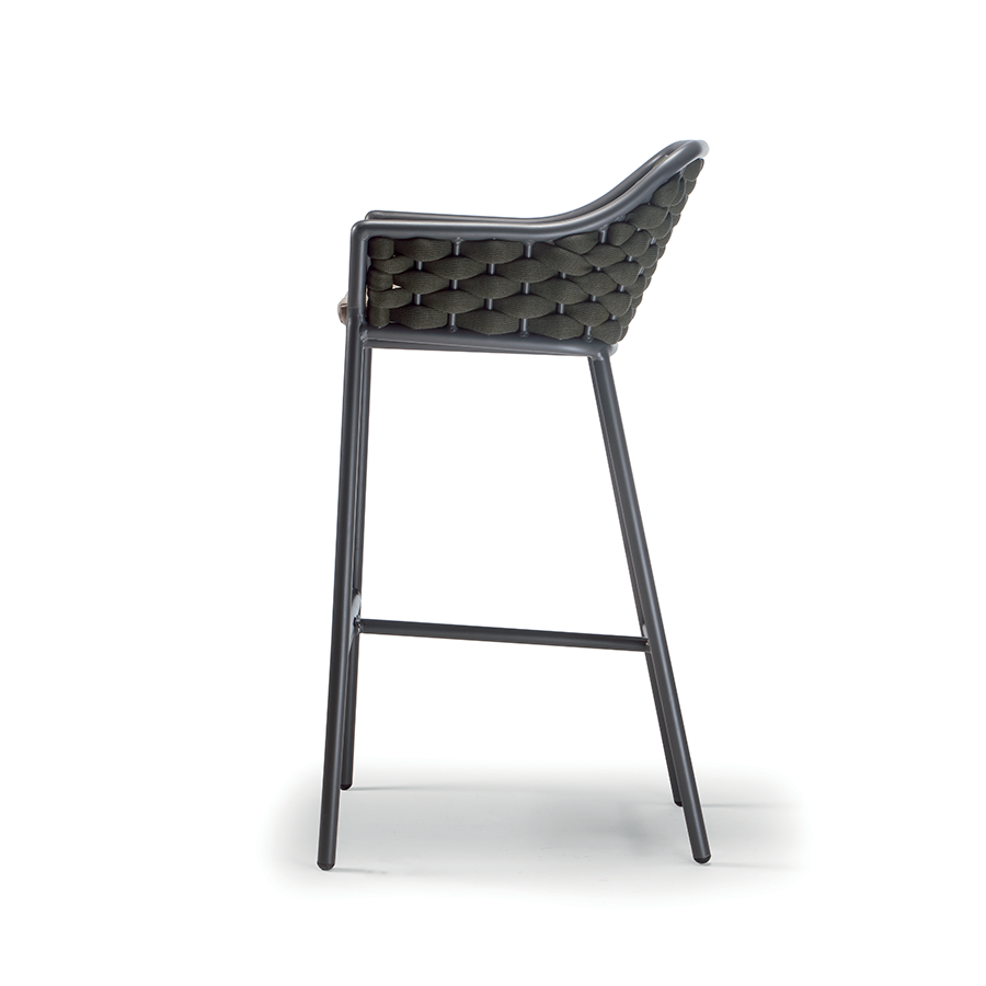 Aluminium barstool covered with textylene and rubber rope. Textylene cushions.( anthracite /brown acrylic cushion )