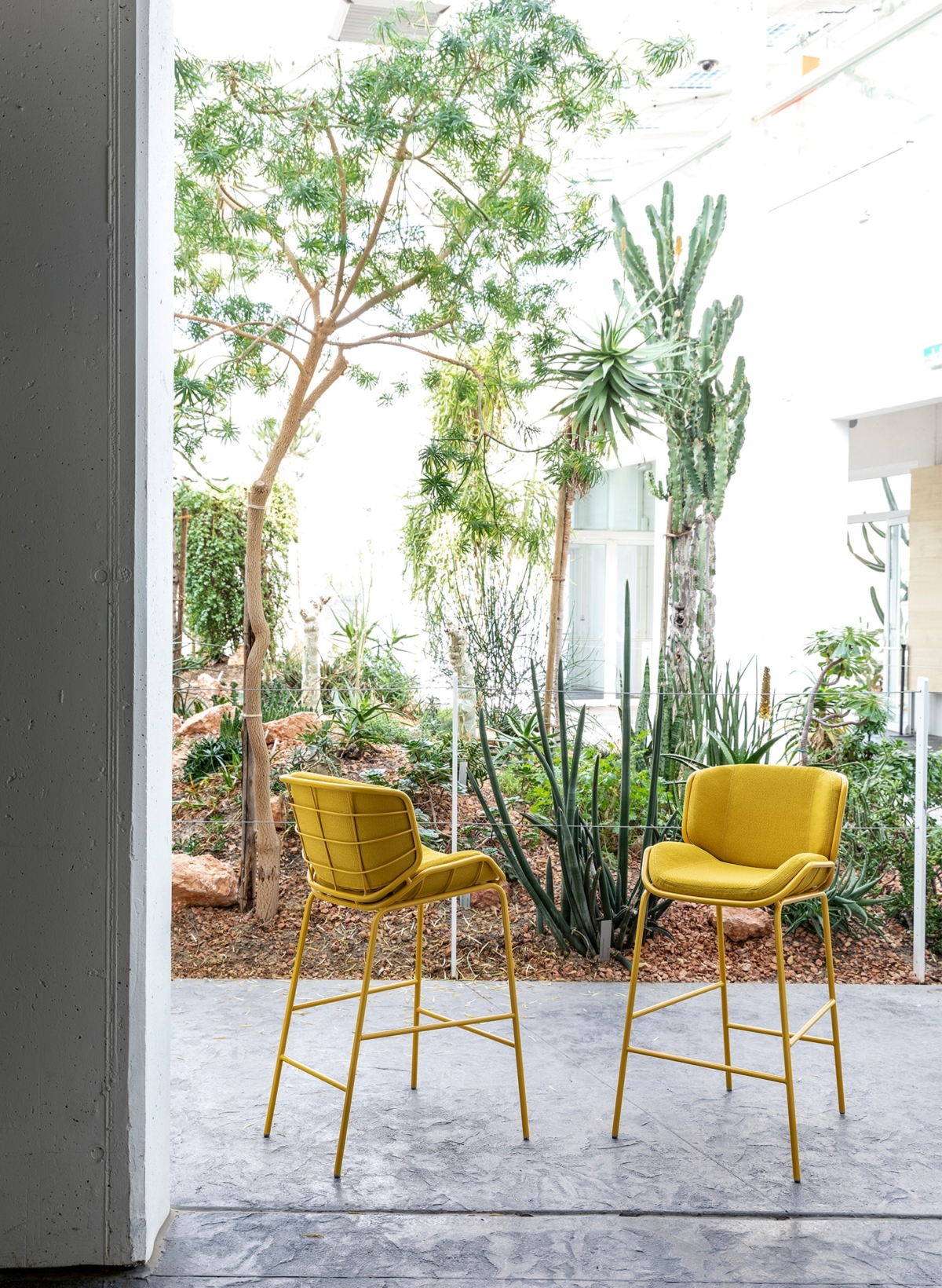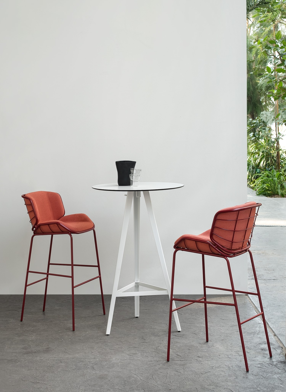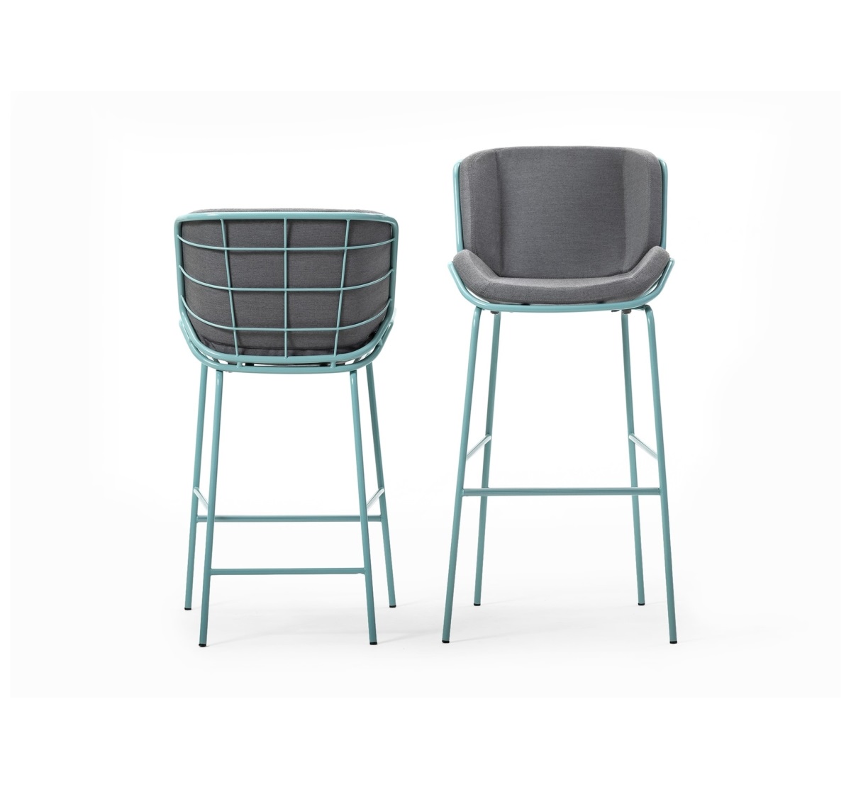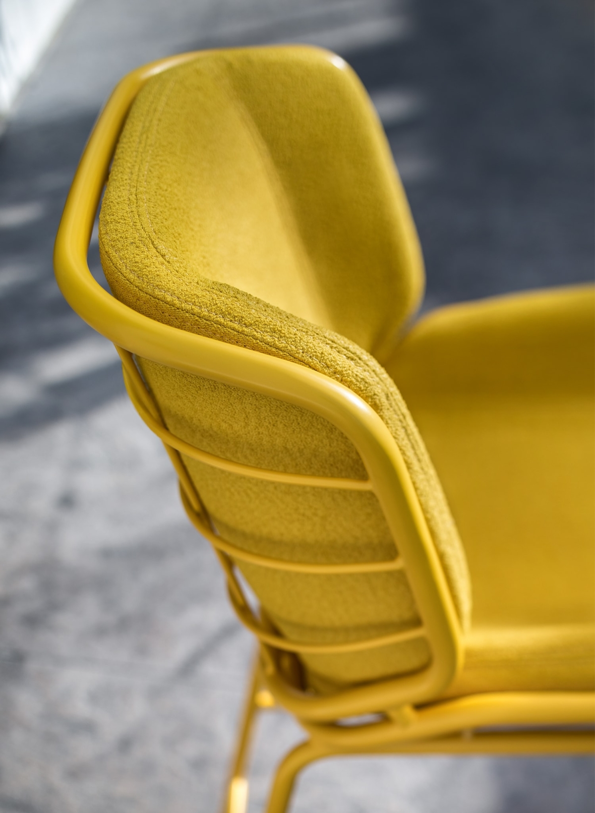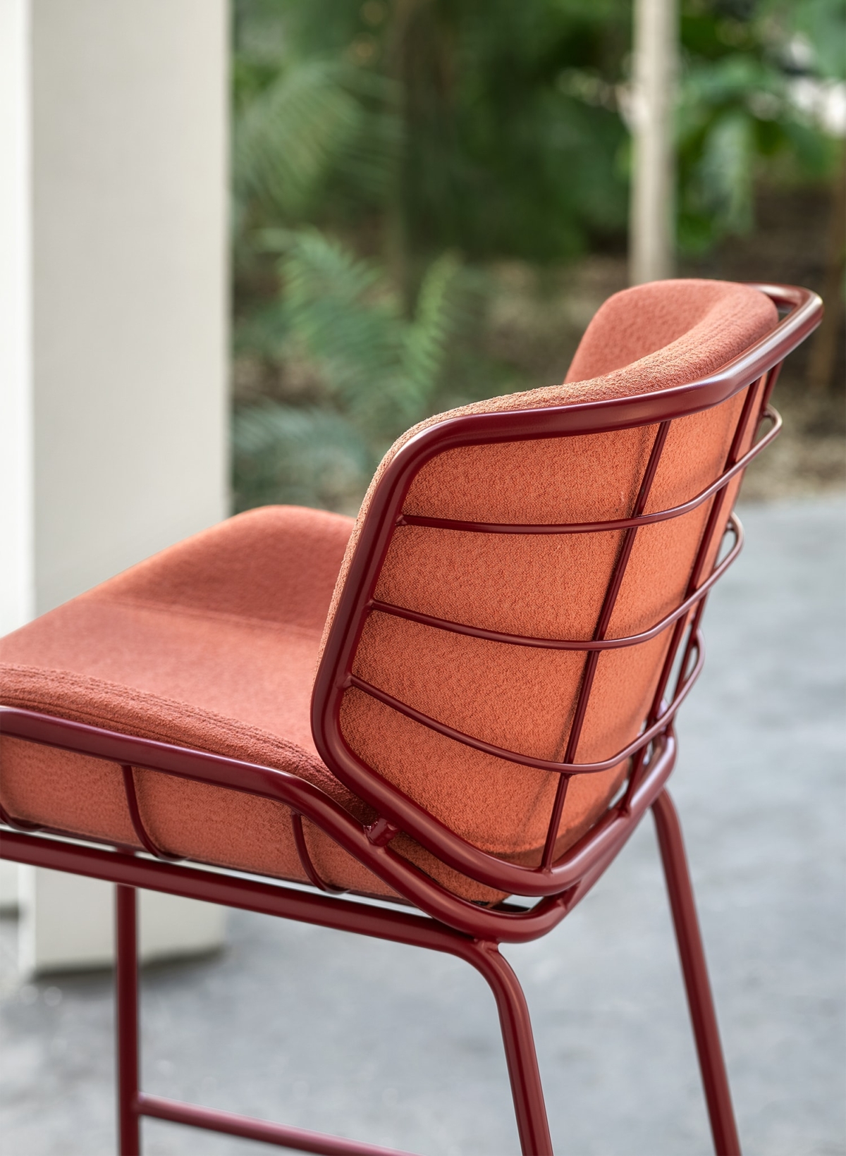 Bringing comfort and style to a snack counter in the kitchen or a public hospitality area, Skin Stool adapts in height and personality to all settings. The painted tubular metal shell can be teamed with full or “light” upholstery options, available in a wide range of fabrics, leathers, eco-leathers and velvets to create tone-on-tone or contrast combinations. As the name suggests, Skin Stool is a second skin for indoor, outdoor and hybrid spaces like verandas, terrace bars and bow windows.