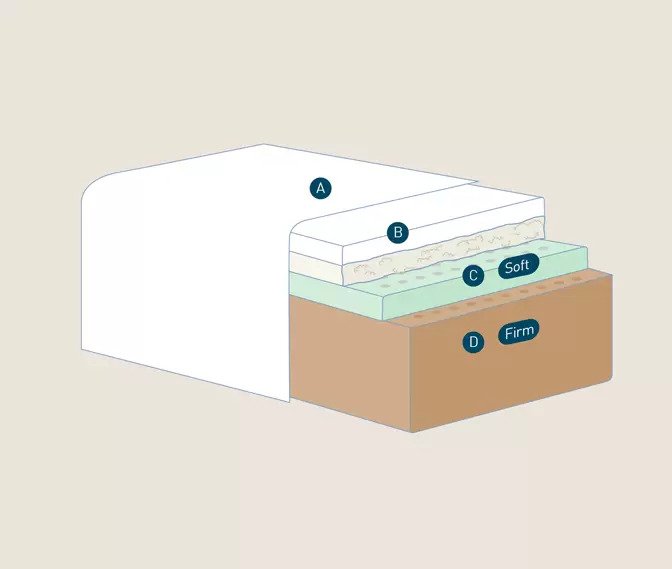 C. Η τεχνολογία Dual Core προσφέρει δύο διαφορετικά επίπεδα στήριξης, απλά περιστρέφοντας τους πυρήνες του στρώματος. Η μέτρια/μαλακή πλευρά προσφέρει μια άνετη και ανατομική στήριξη, χάρη στην στρώση Geomemory (3cm) . Ενώ η μέτρια/σκληρή πλευρά προσφέρει μια πιο σταθερή στήριξη, χάρη στην στρώση Ecogreen.