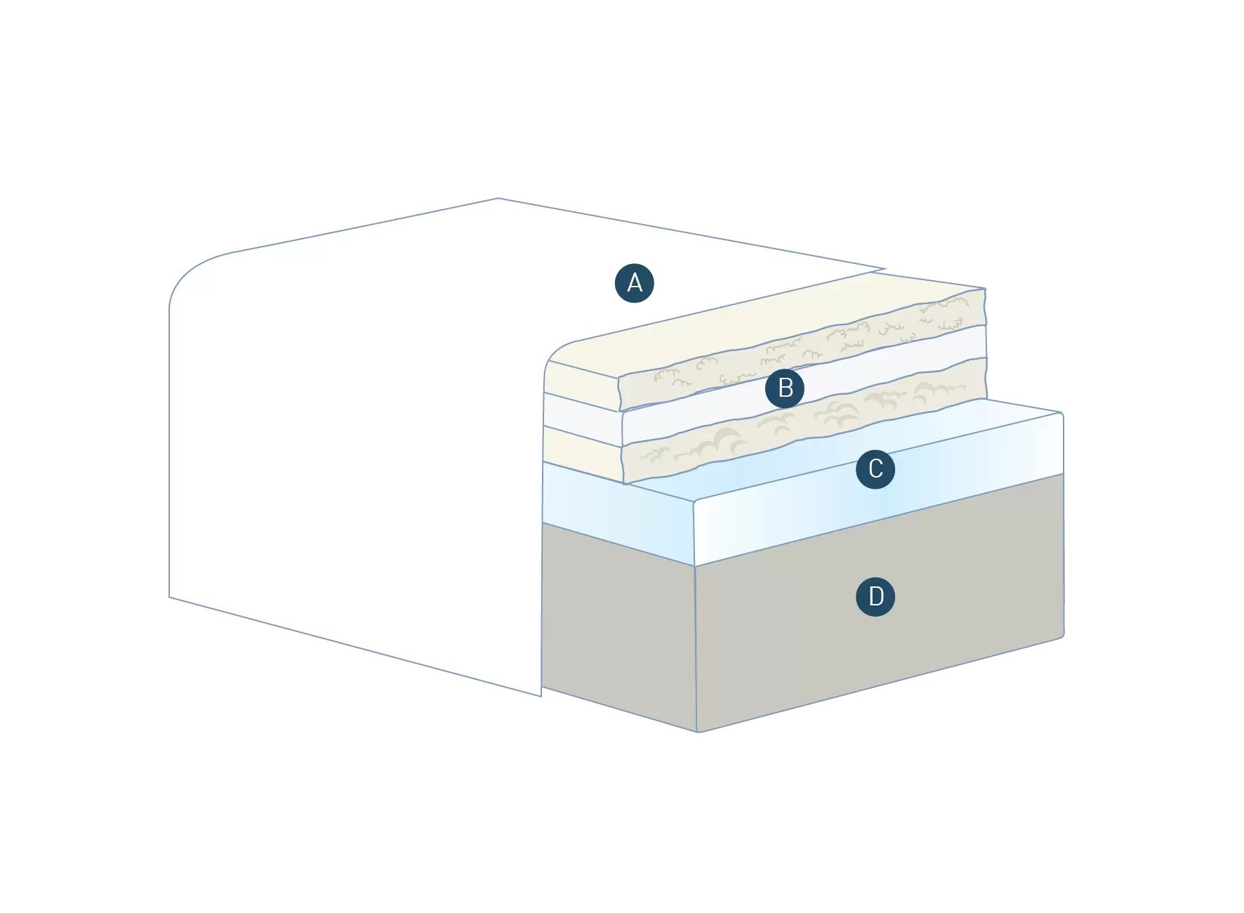 C. Η στρώση από Aquabreeze (5 cm) είναι ένα εύκαμπτο και αναπνεύσιμο υλικό, που προσφέρει μια απαλή και δροσερή στήριξη.