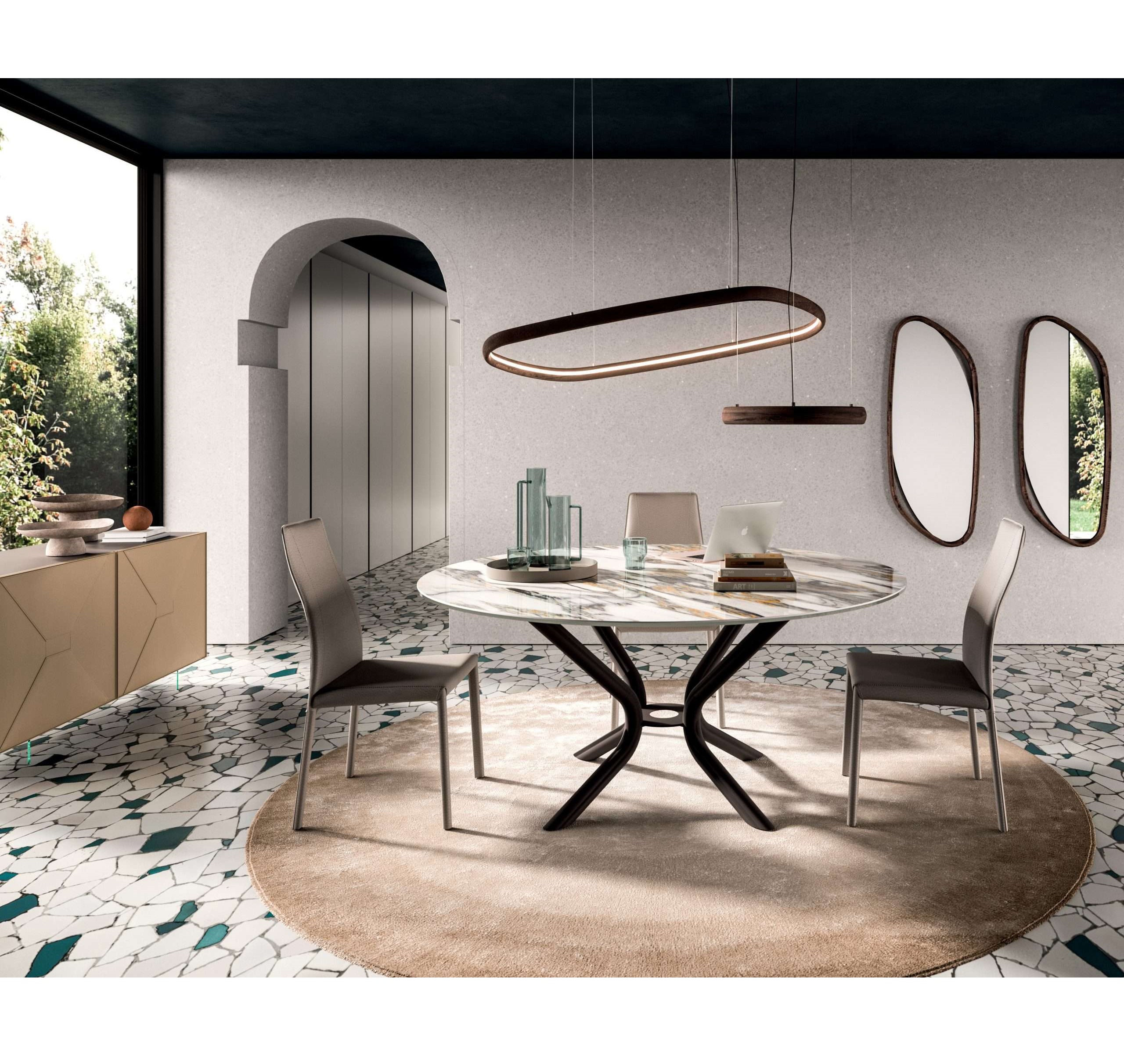 Το 150 είναι η νέα διάσταση της τελειότητας. Είναι η ιδανική διάμετρος για ένα κεραμικό τοπ με αριστοκρατική εμφάνιση που περιλαμβάνει τρία τραπέζια από τη συλλογή OZZIO ITALIA: Cirkle Fisso, Big Round Fisso και Veliero Fisso. 4 χρώματα για να διαλέξετε ανάμεσα σε πρωτόγνωρες αποχρώσεις και ζωηρές φλέβες, για ένα έργο με αποκλειστική γεύση.