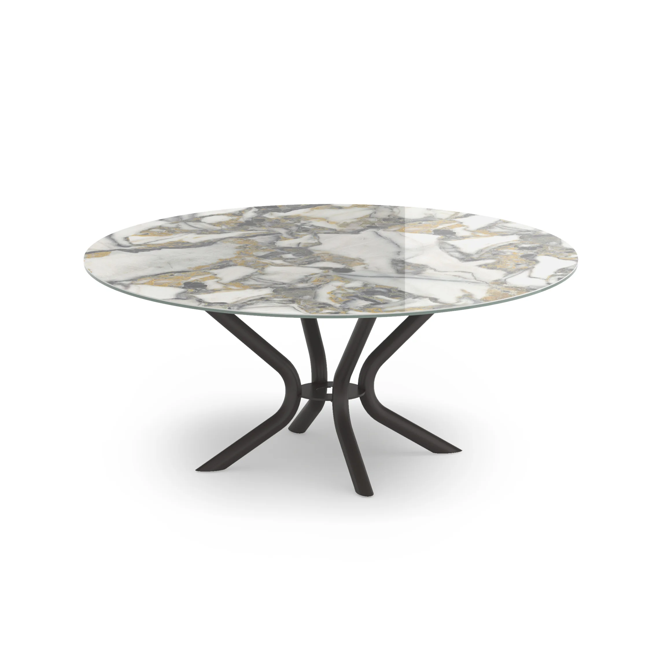 Dining table with fixed circular Ø 150 top and painted metal base.