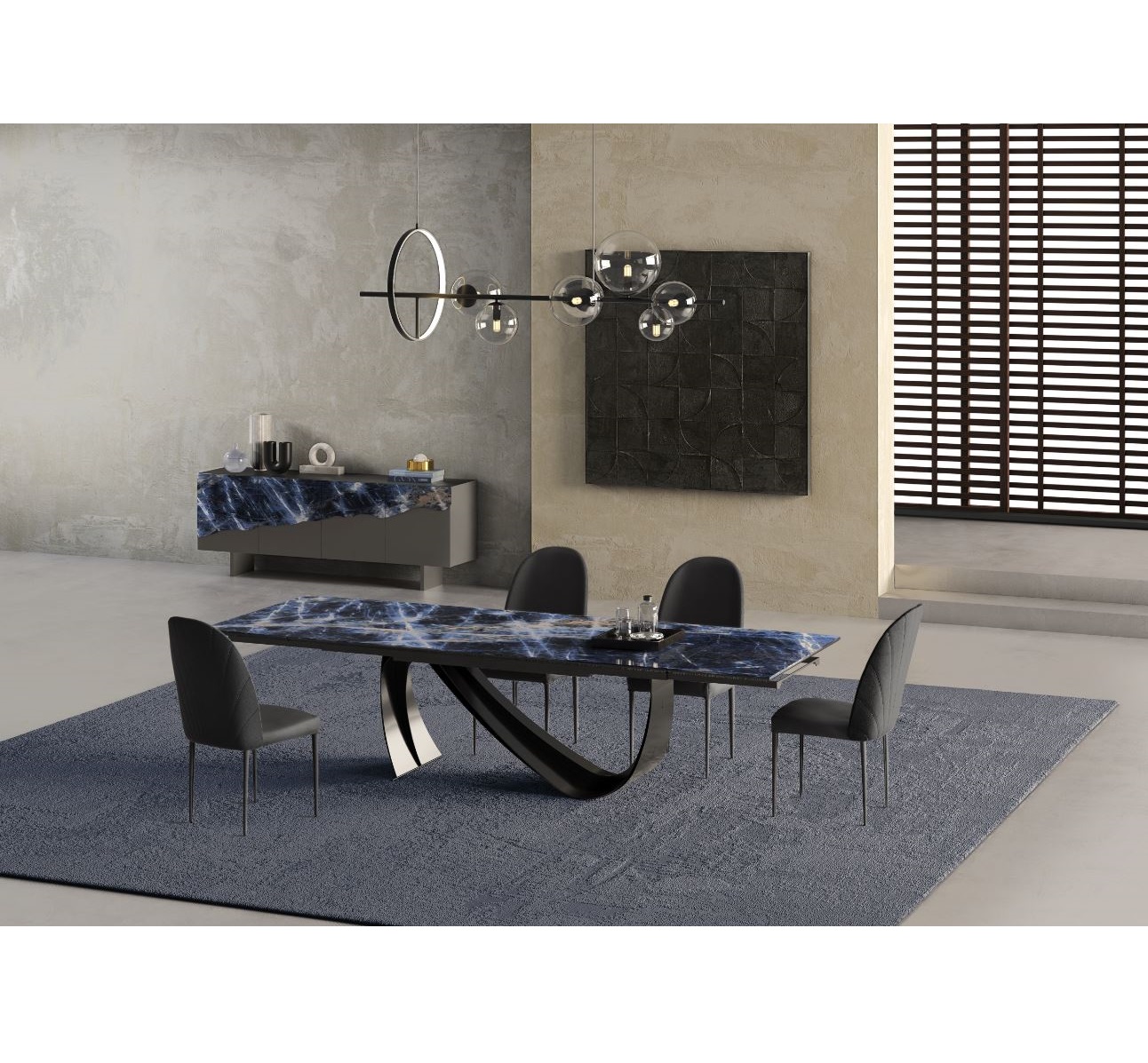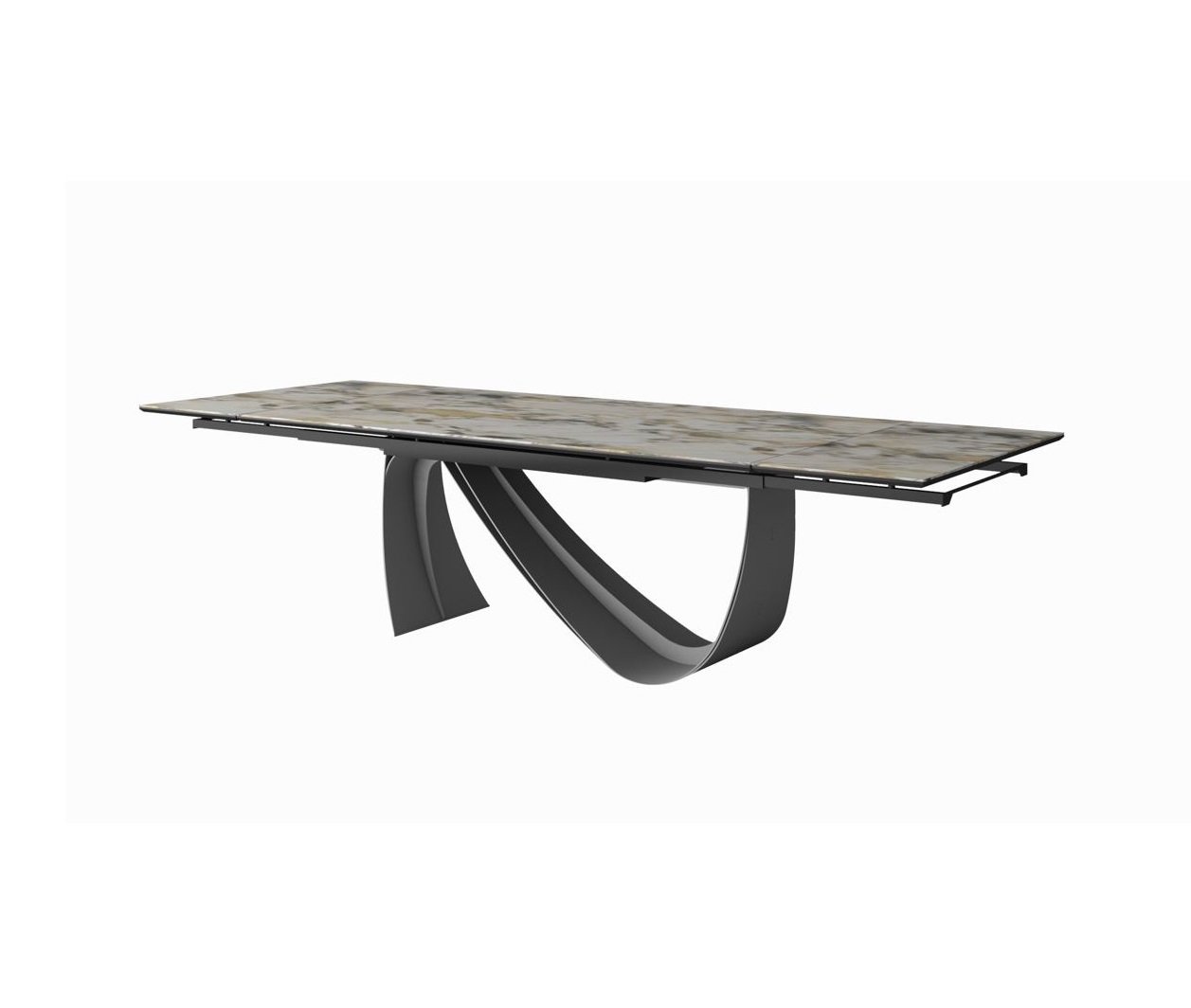 The Flex extendable table features lines that evoke absolute elegance: the ceramic shades contrast with the playfulness of the leg structure, creating a uniquely designed table.