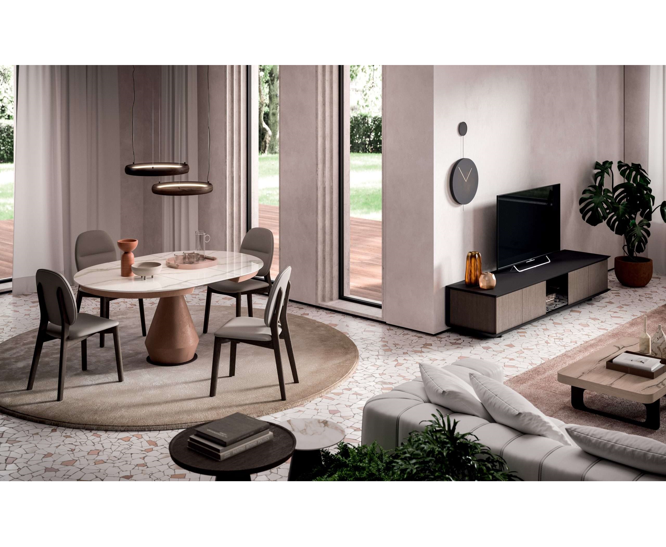 Στη σκακιέρα του σαλονιού σας, το concept Lycos παραπέμπει στο σχήμα ενός επισκόπου, κυριαρχώντας στη σκηνή με στιβαρή κομψότητα. Η κορυφή είναι στρογγυλή, έτοιμη να επεκταθεί σε νέες εμπειρίες. Ένα τραπέζι σμιλεμένο για τις καθημερινές σας ανάγκες, με μπλούζες και προεκτάσεις που διατίθενται σε πολλά υλικά, επίσης από ξύλο. Για εσάς και τους καλεσμένους σας, ματ.